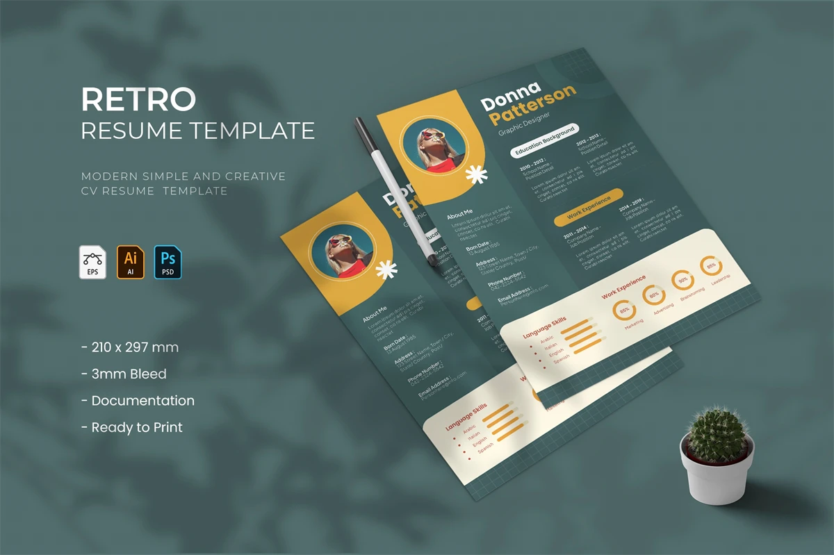 creative resume and cover letter template that will make your resume stand out from the hundreds of resumes employers get. It gives you the information you need, such as your name, contact information, social media links, education, experience, skills and interests. Also, it comes with three different color schemes.
