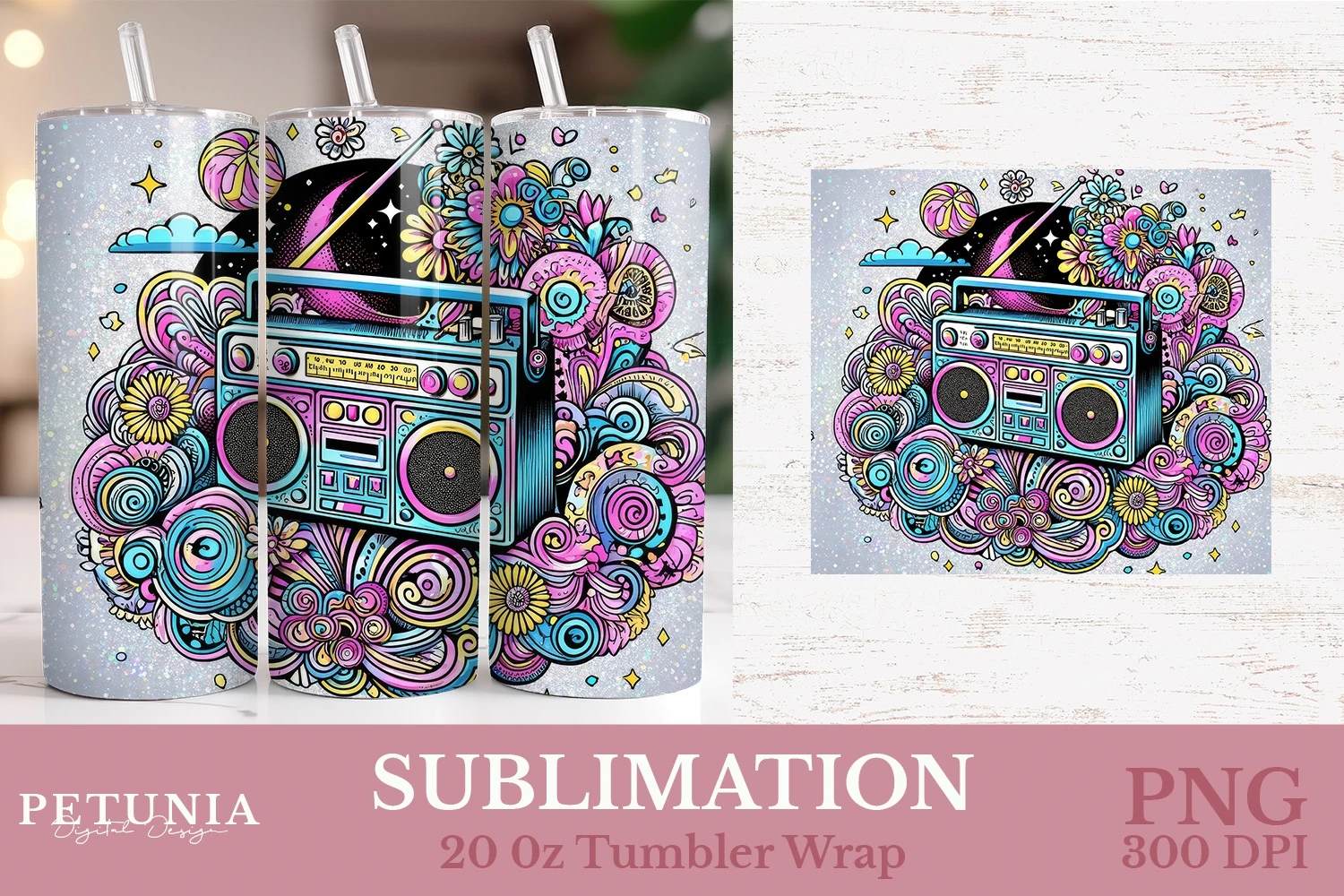 Retro 80s 20oz Skinny Tumbler Wrap Sublimation PNG Design