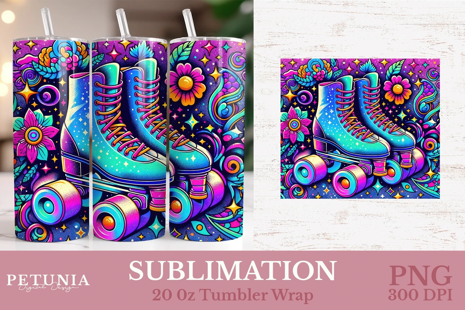 Retro 80s 20oz Skinny Tumbler Wrap Sublimation PNG Design