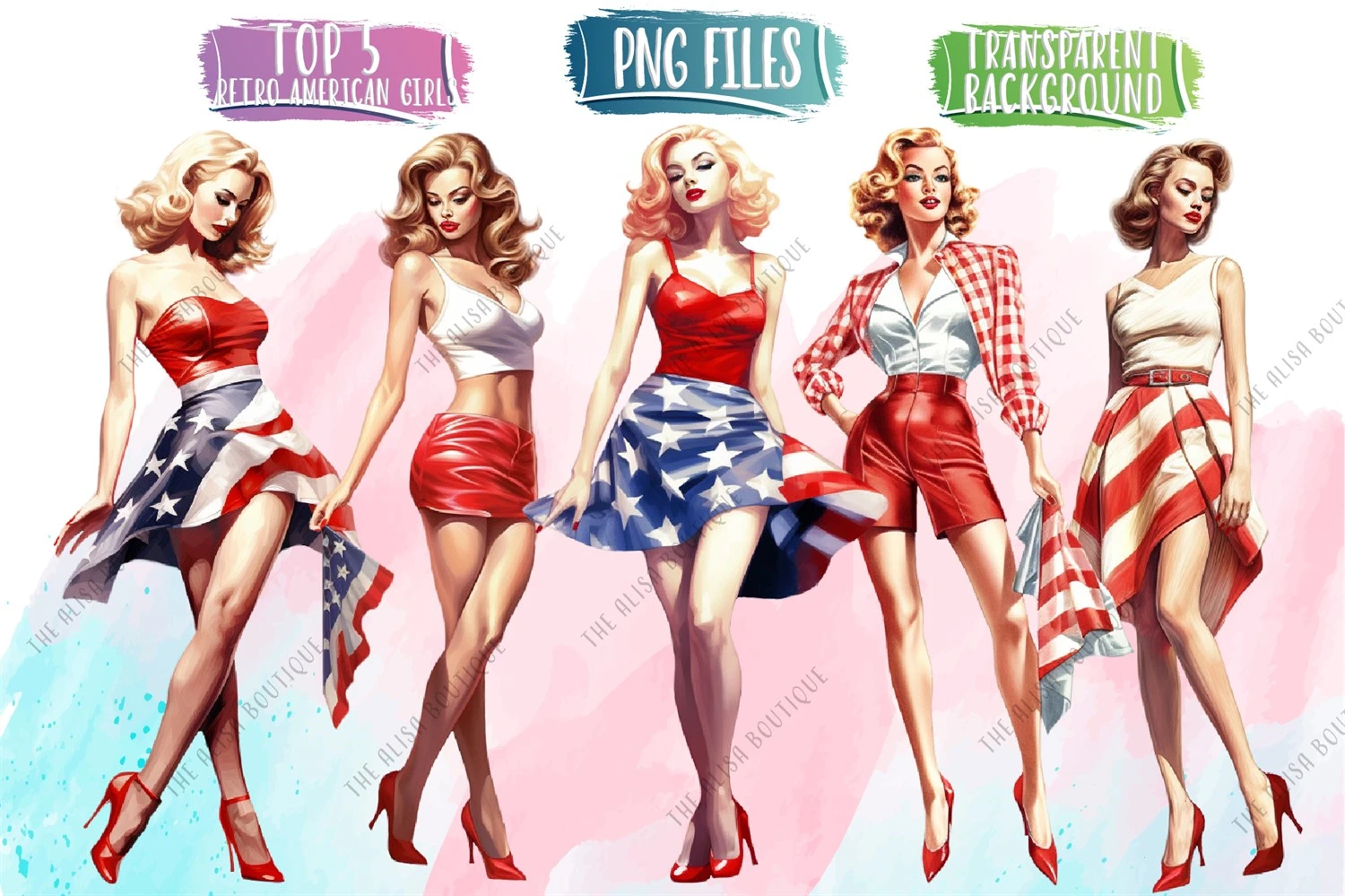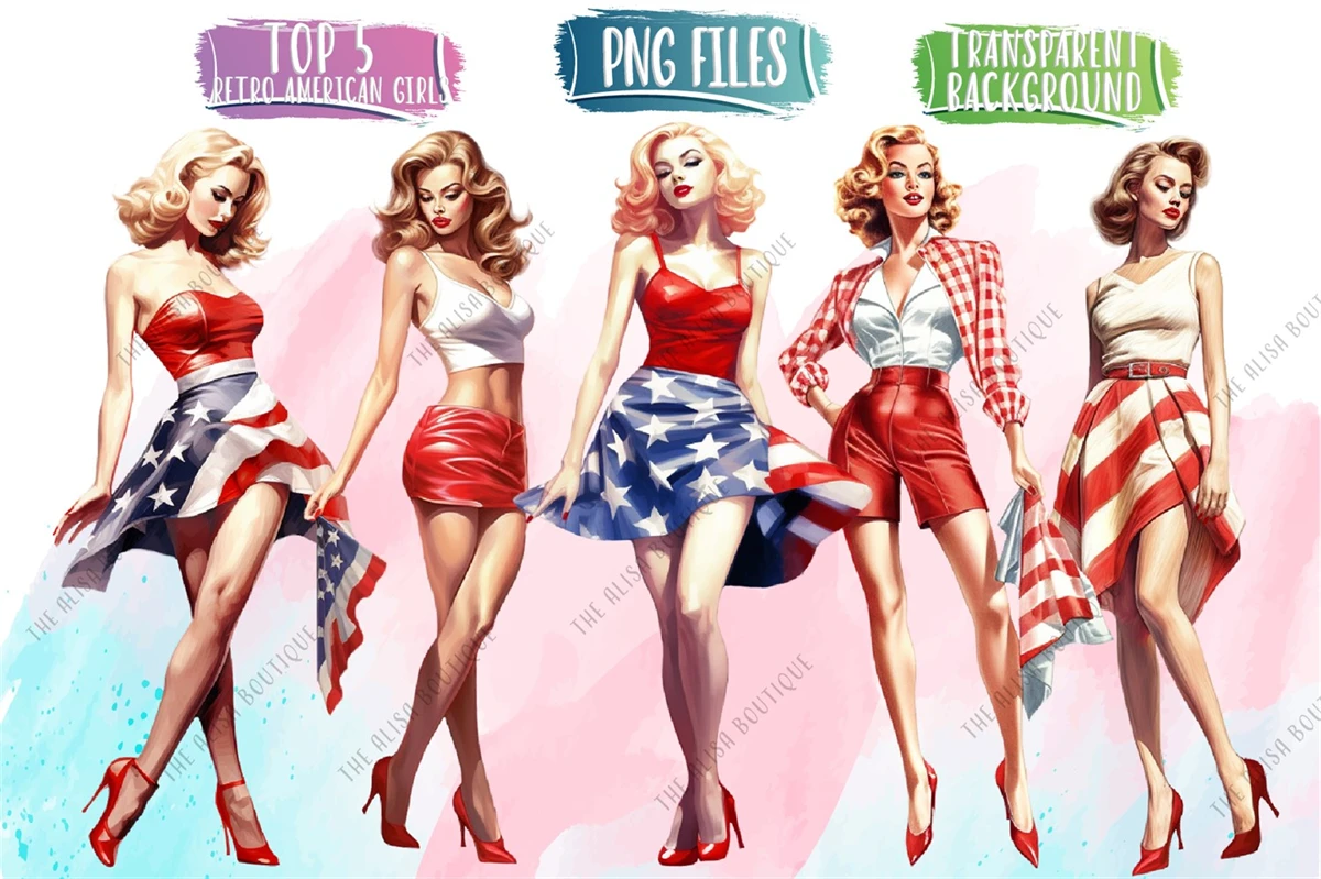 Introducing our Retro American Girl Clip Art collection! Embrace the empowering "girl boss" style with these adorable and trendy kawaii art illustrations. Each PNG file features a retro-inspired American girl, exuding confidence and charm. Perfect for adding a touch of nostalgia and fun to your projects, these clip art images are ideal for stickers, stationery, scrapbooking, apparel, and more. Let your creativity soar and make a statement with these unique and captivating designs.