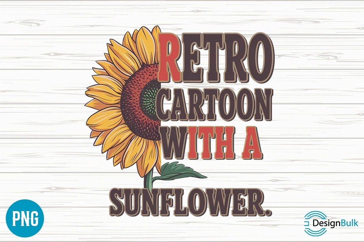 Retro Cartoon with a sunflower-Sublimation PNG Design
