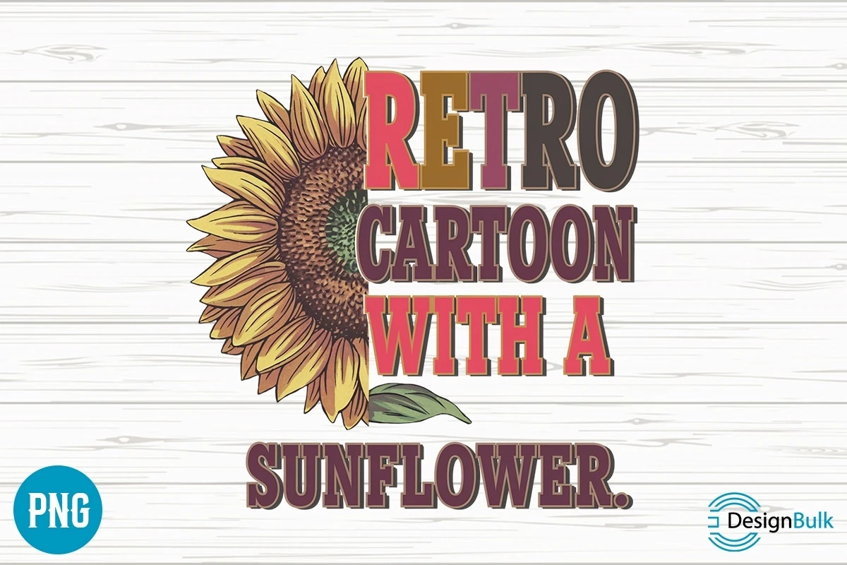 Retro Cartoon with a Sunflower-Sublimation PNG Design