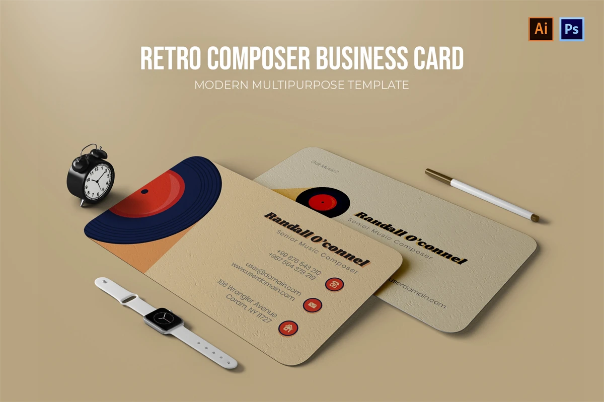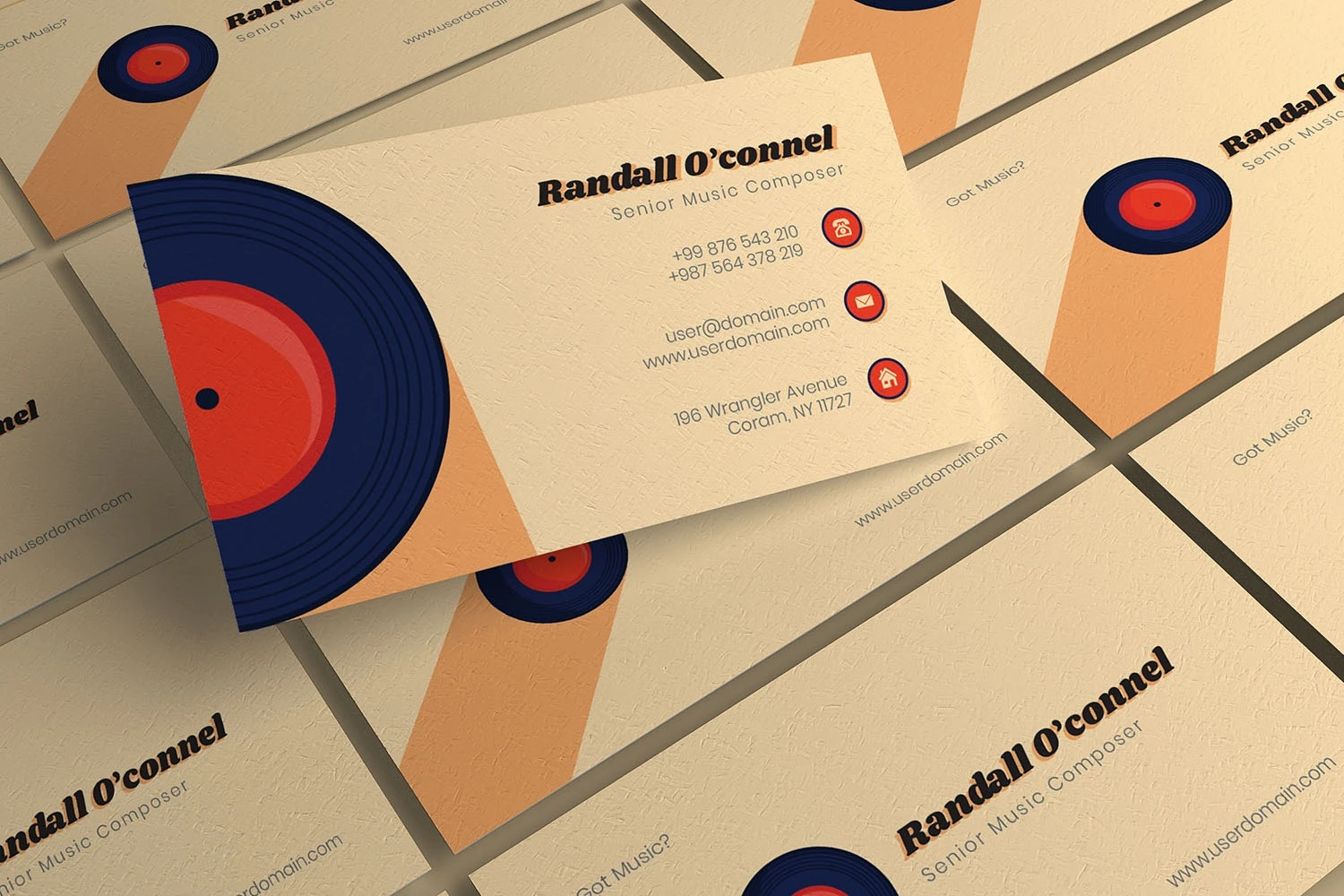 This Retro Composer - Business Card make your business cards look professional. You can use this business card for, identity, company business cards, Corporate Business, Creative, Blogs, Photographers, Artists, Designers, etc.