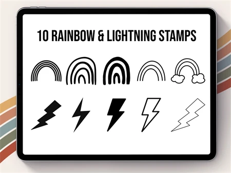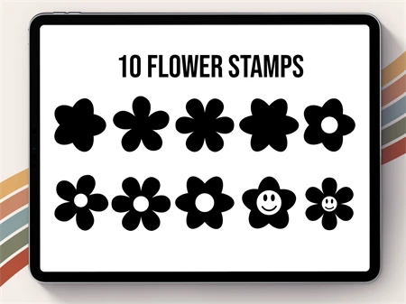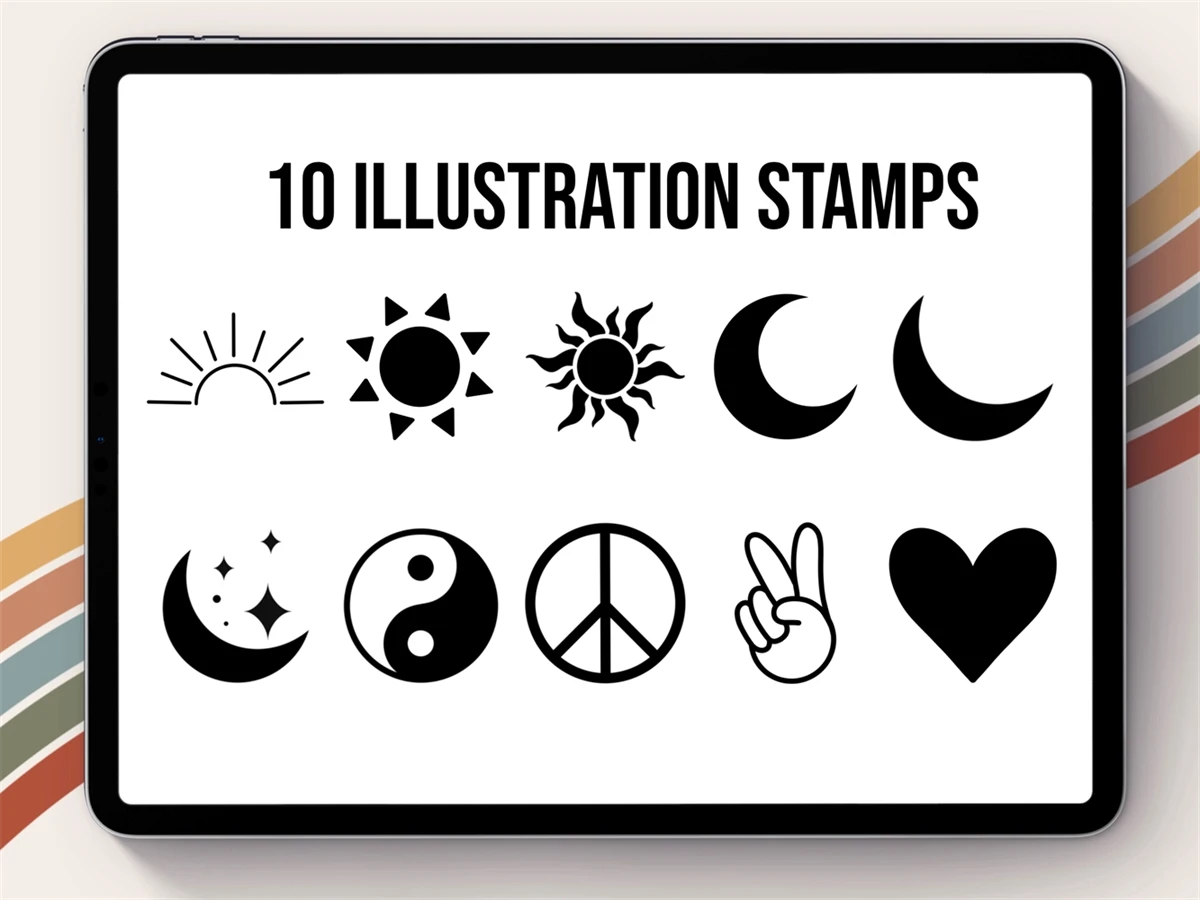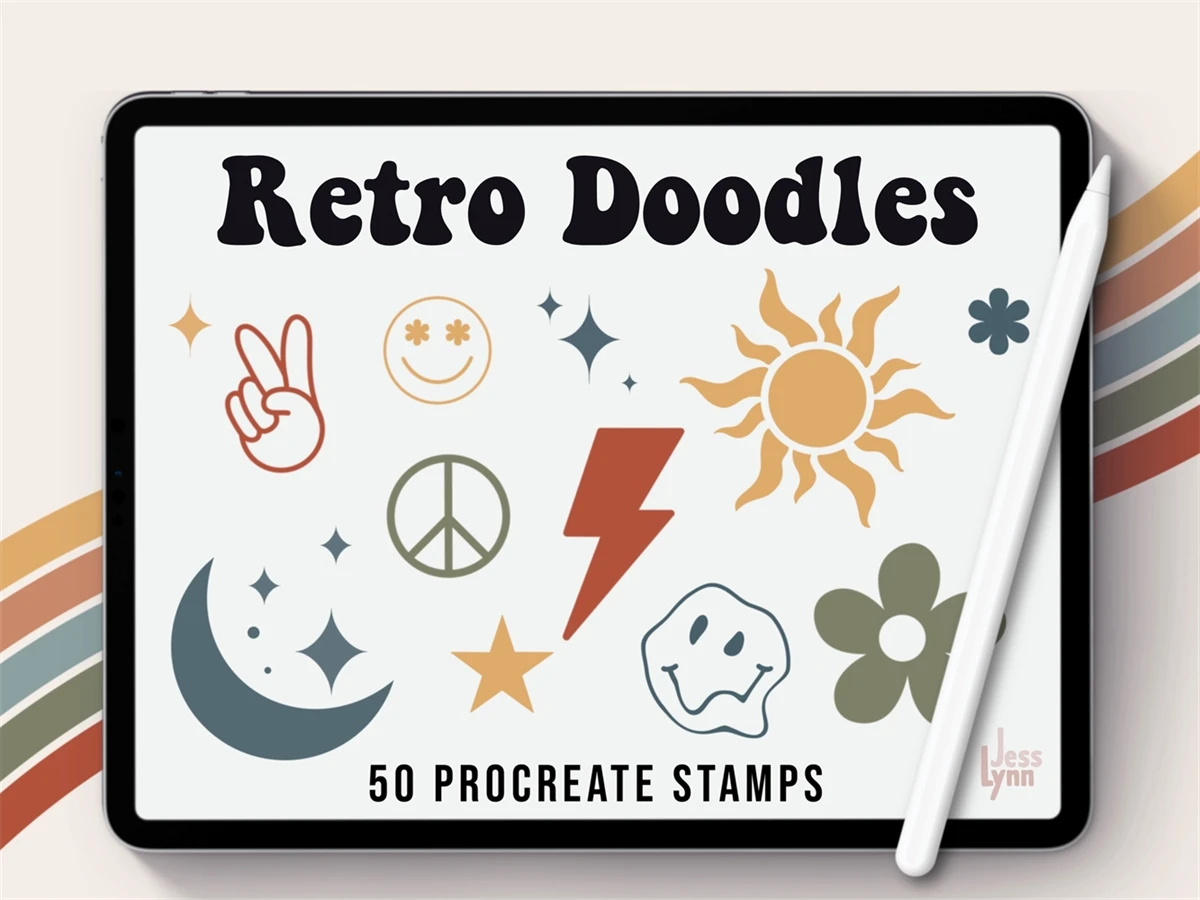 Effortlessly create trendy text designs in Procreate with these 50 retro doodle stamps! Combine an illustration stamp with a retro font or use one of the highlight combos to add the finishing touch to your artwork.