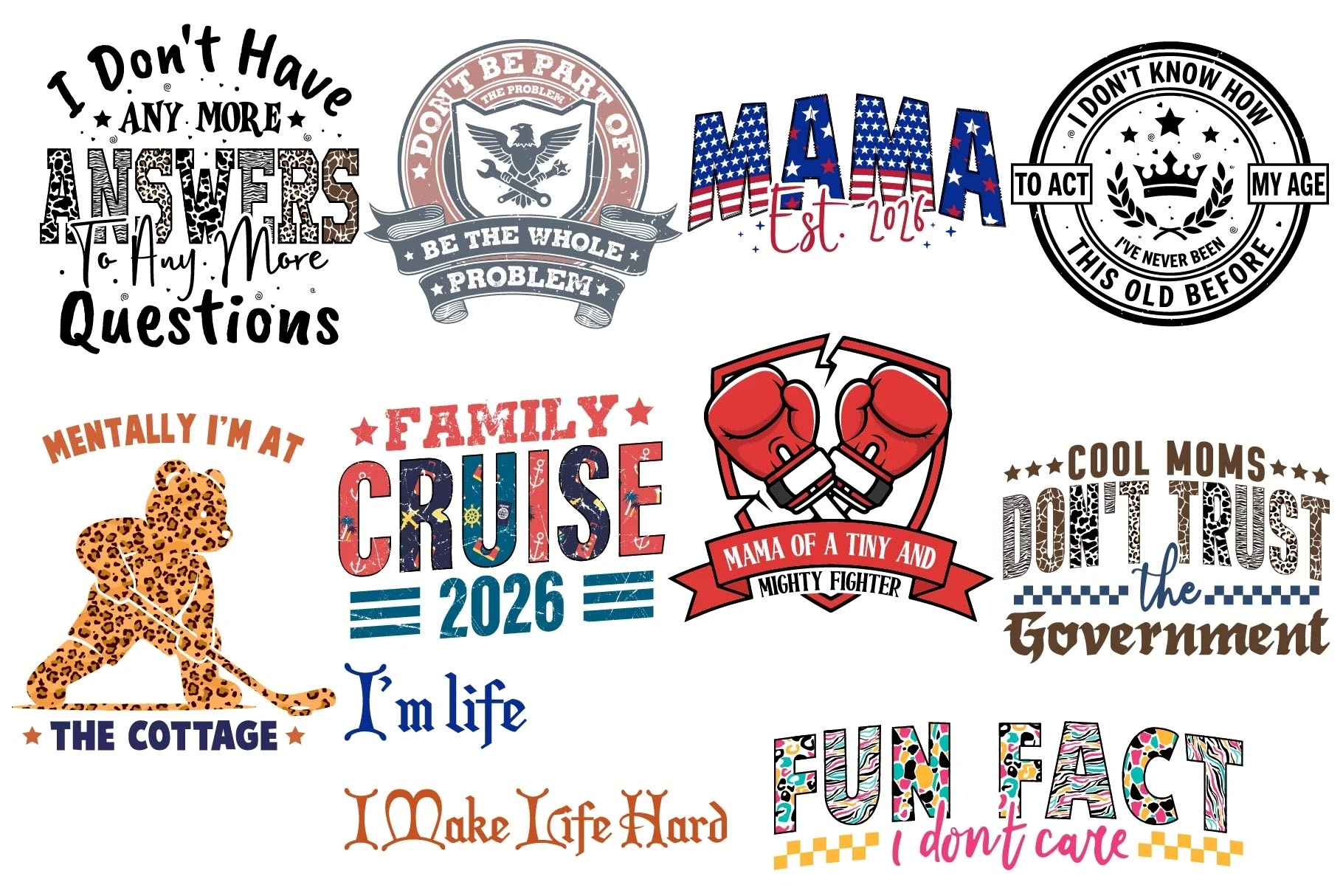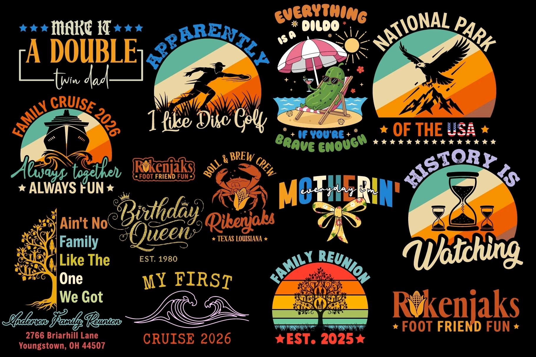 Inside this bundle, youll find designs for family reunions, cruises, birthdays, national park themes, funny adult humor, and trending lifestyle quotes. Each design is crafted in a retro style with bold typography and eye-catching illustrations that sell well in todays market.