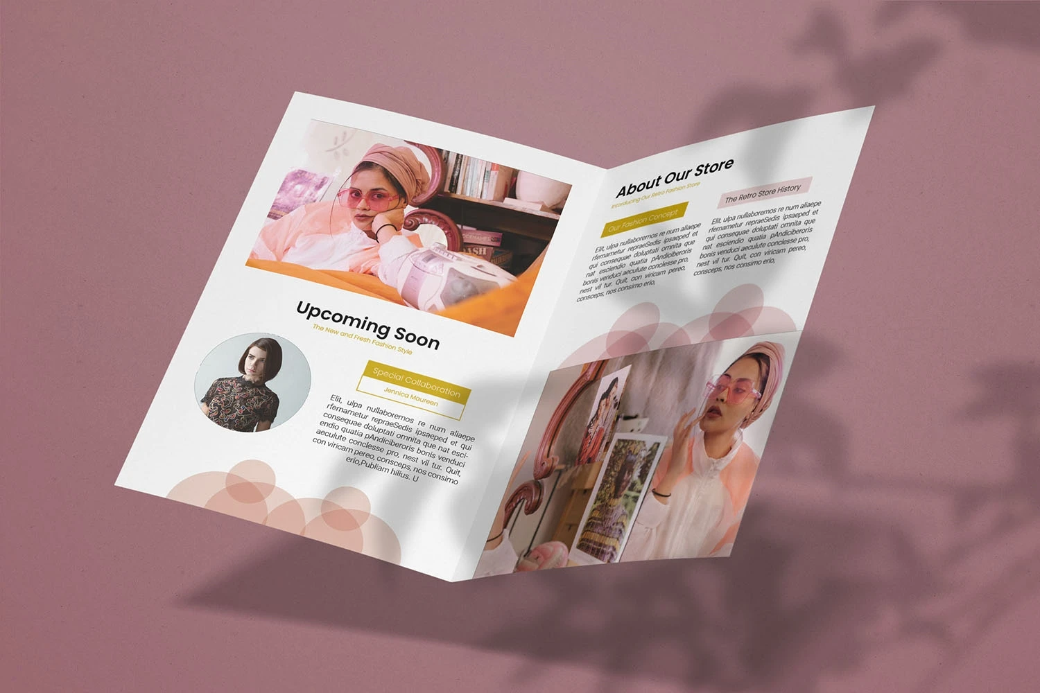 Retro Fashion - Bifold Brochure We present this Bifold Brochure for you, simple and very elegant, and this Bifold Brochure is suitable for all types of your business, made with adobe inDesign, very easy to customize, Hope you Like it, dont forget to rate, Thanks.