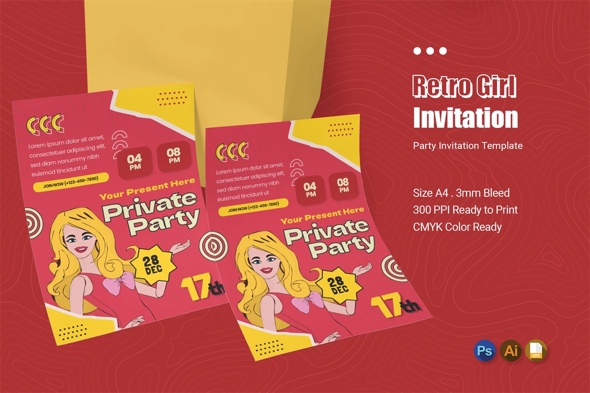 Of course you want to invite friends to your Party Invitation with the best invitations! Impress the invited guests with your style of invitation, by using this invitation card template. You can easily edit & customize each of the designs because every component is well organized and editable.