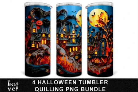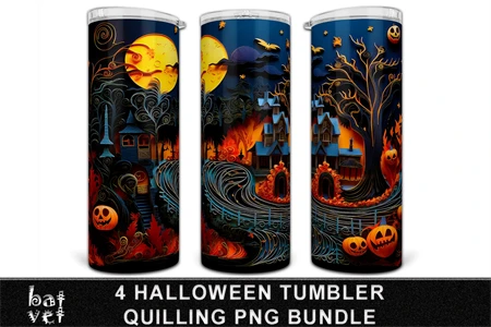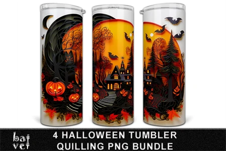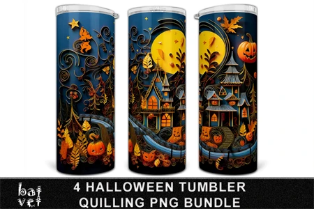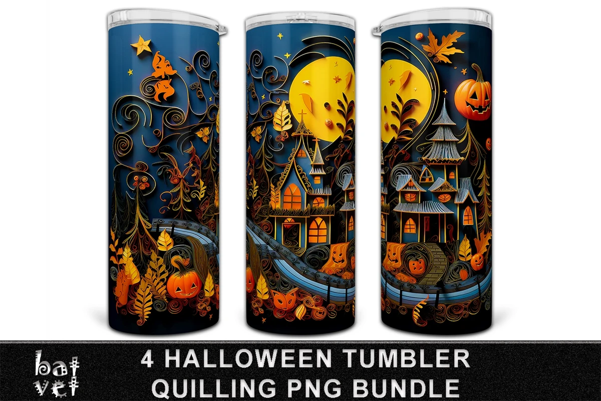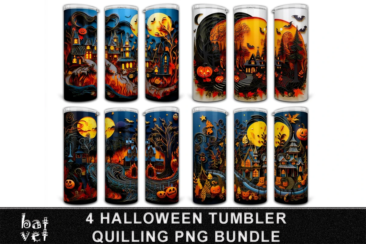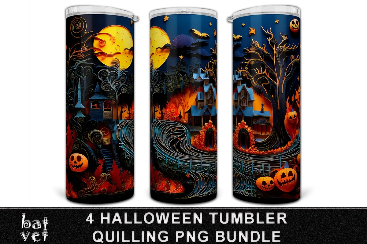 Retro Halloween Tumbler Sublimation Bundle / Halloween Quilling Print Tumbler / 4 PNG Files