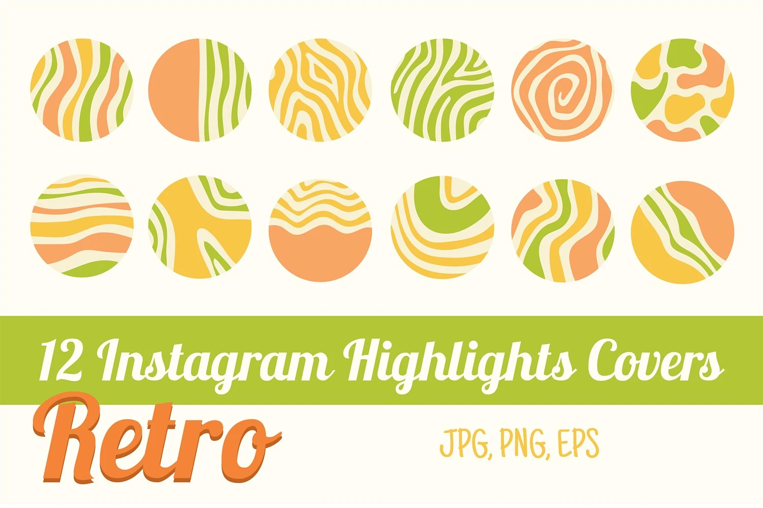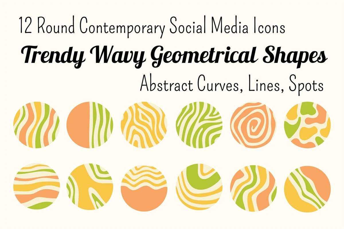 Big Set of round Abstract wavy backgrounds. Instagram story highlight covers. Trendy Groovy highlight covers collection with organic geometric shapes: hand drawn curves, spots, lines. Melting vector illustration. Contemporary social media icons design.