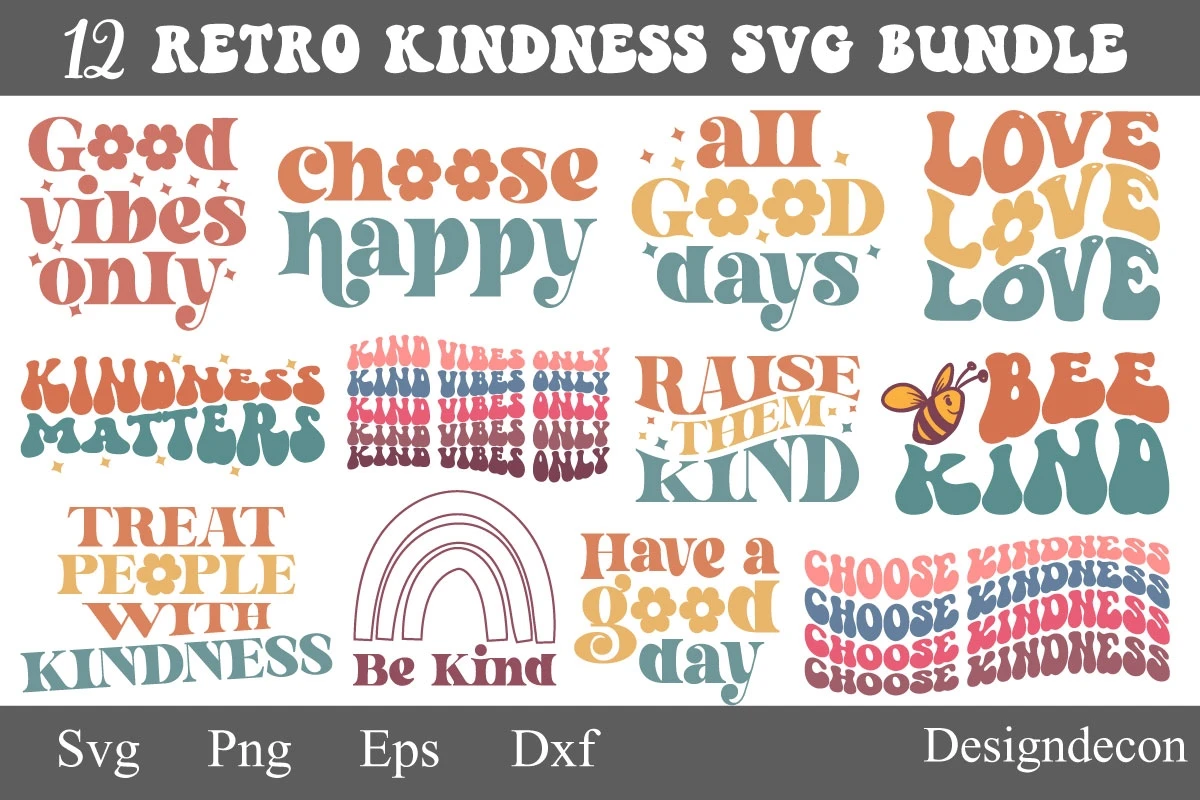 Retro Kindness Inspirational / Christian quote typography SVG Bundle