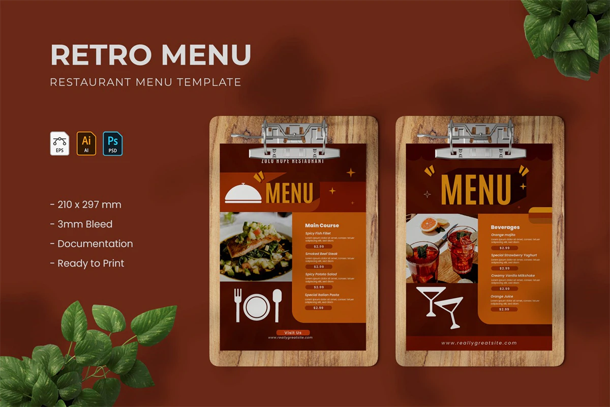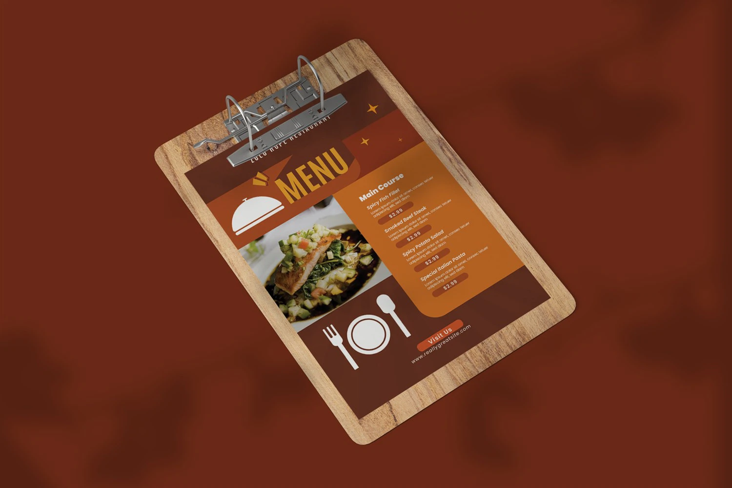 Menu Restaurant Template is a menu template for people who sell, business, or run a food-related business. The layout makes it easy to find the menu you want. Too many choices can make customers feel overwhelmed, so its better to limit the number of choices, colors, and other design elements so that customers can easily scan and order items.
