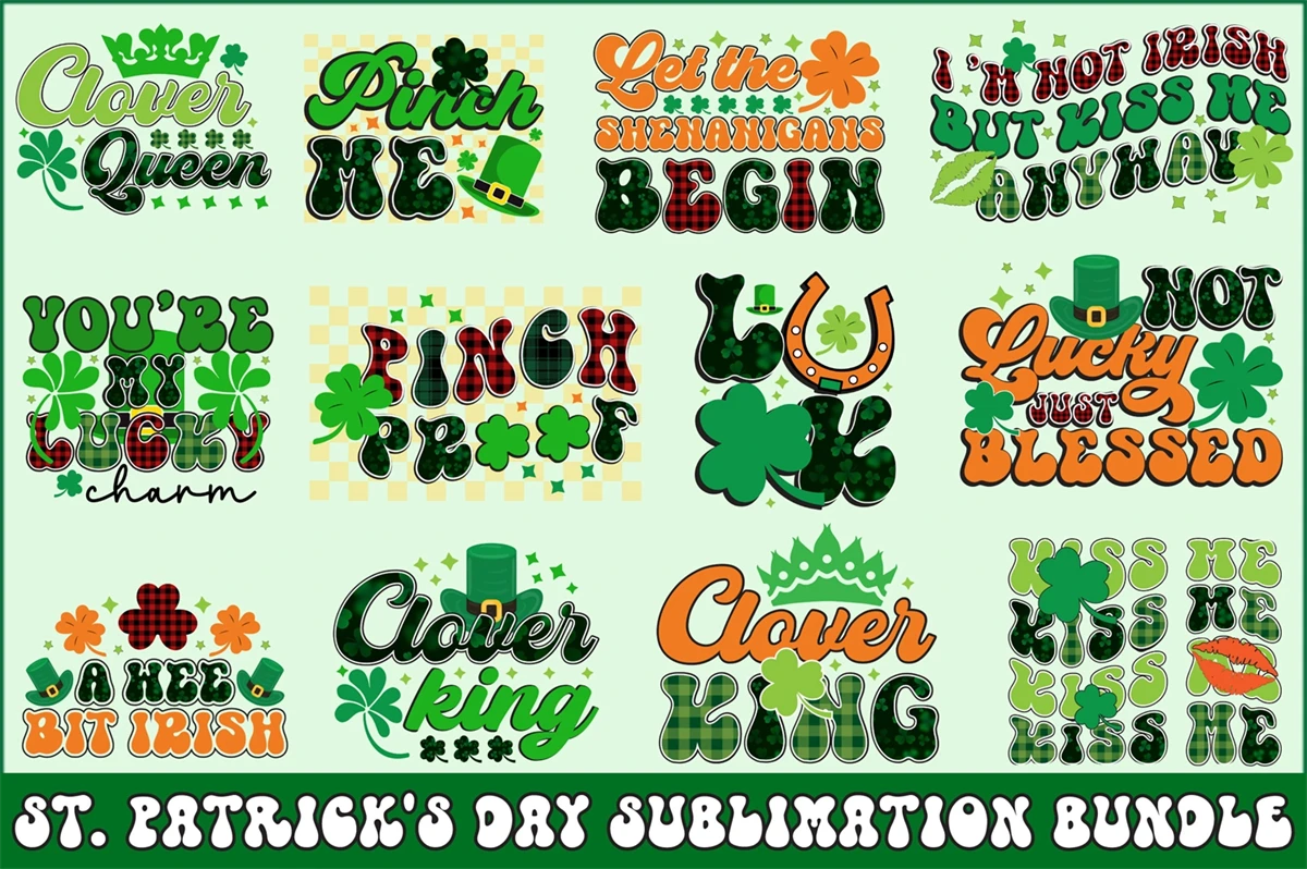 Retro St. Patricks Day Sublimation Bundle Instant Download