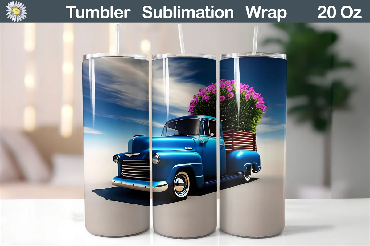 Retro Truck Flowers Tumbler. Vintage Truck Tumbler