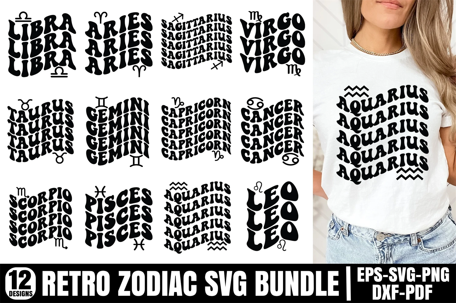 Retro Zodiac Signs SVG Bundle, Astrology Signs SVG