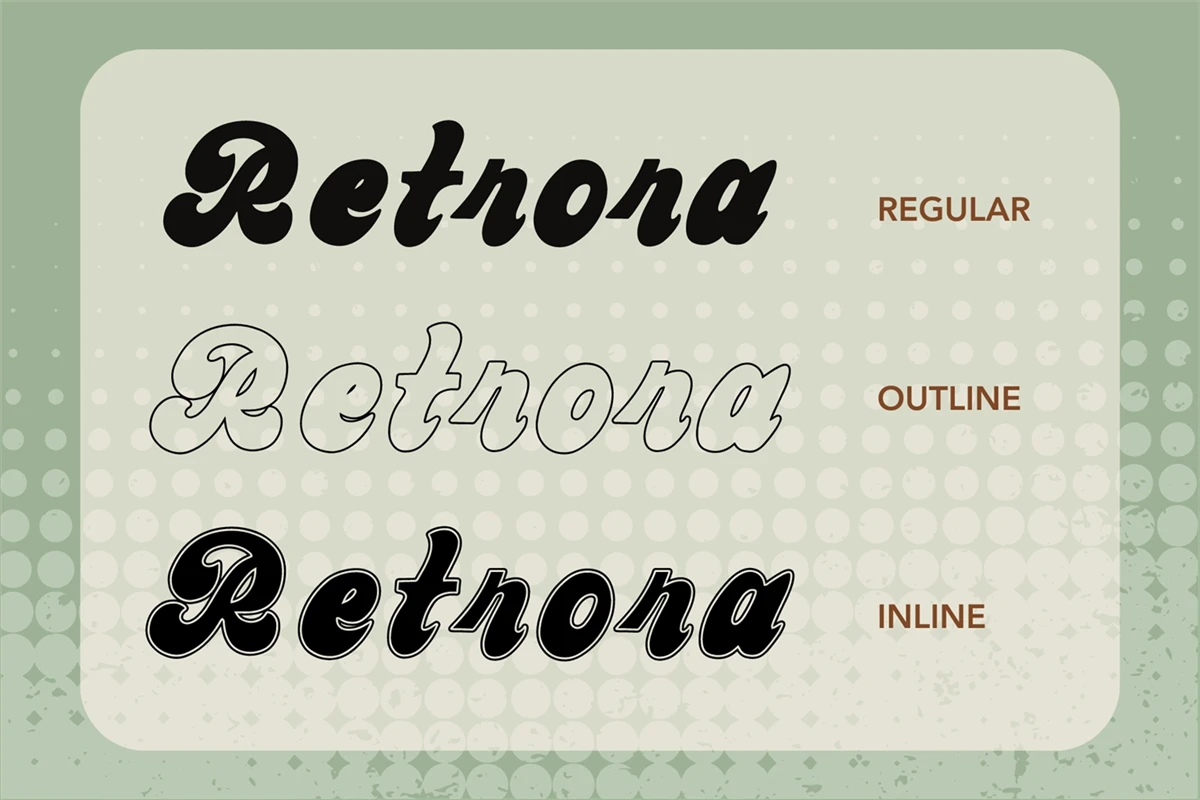 Retrora is a retro, vintage-style display font. Use it to add that special retro touch to any design idea! It can be used for versatile projects. This font is perfect for those looking to create a strong visual identity with a contemporary edge, making it a standout choice for modern design projects.