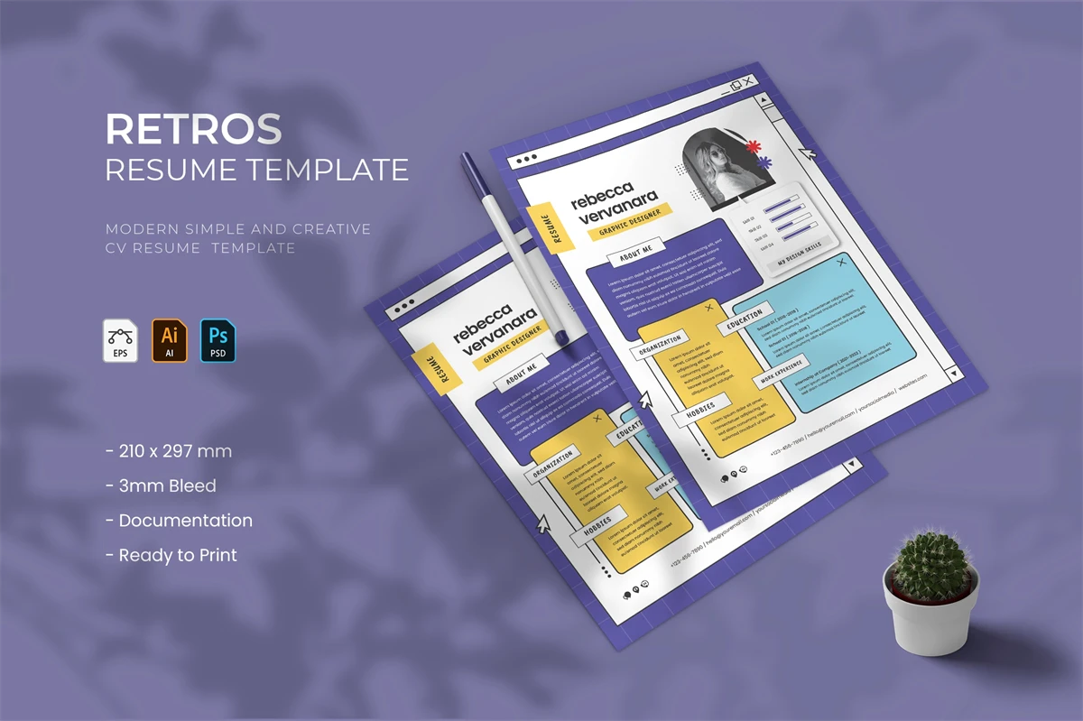 creative resume and cover letter template that will make your resume stand out from the hundreds of resumes employers get. It gives you the information you need, such as your name, contact information, social media links, education, experience, skills and interests. Also, it comes with three different color schemes.