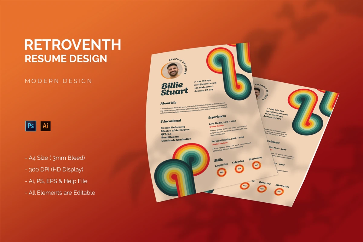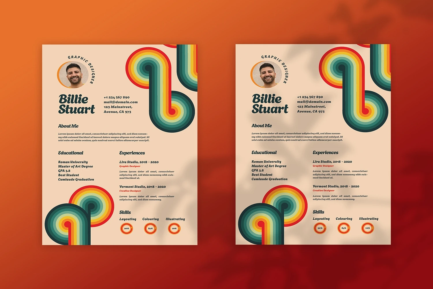 This CV resume design template lets you tell your story to potential employers or collaborators by showcasing your skills, experience, and accomplishments. It presents your credentials clearly and professionally to draw attention and highlight your strengths.