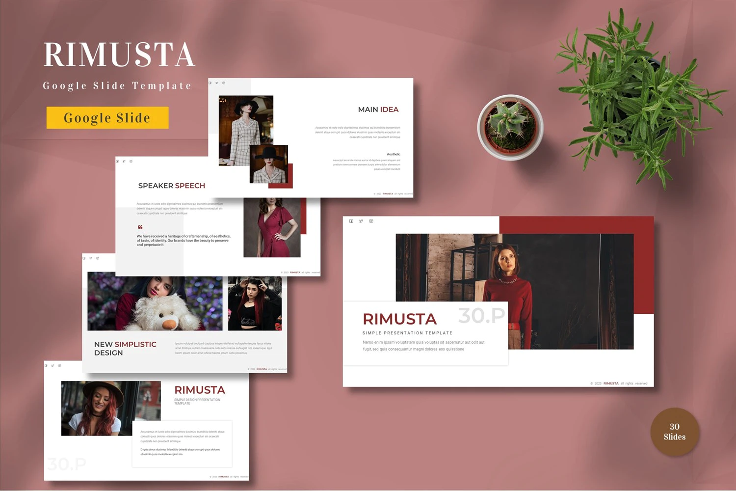 Get it now! **Rimusta - Google Slide Template** for All Business and Personal Needs All elements on this template are editable; input your content, replace your image with a placeholder, change the color, and all presentations include an animated slide to present your slides.