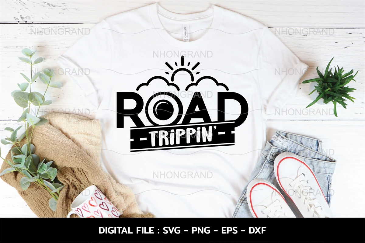 Road Trippin' summer vacation with road wheel cloud sun svg, lover gift t-shirt, Cricut Files, svg, png, eps, dxf, Instant Download