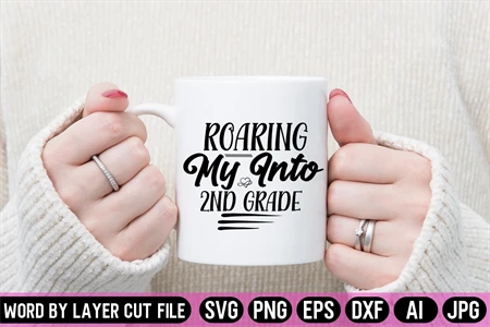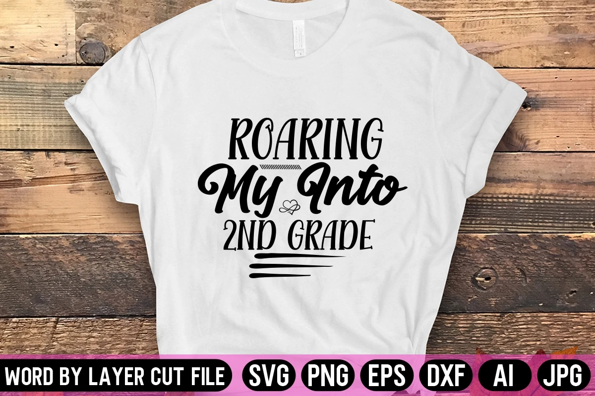 Roaring My Into 2nd Grade Svg Design, Svg Cut File