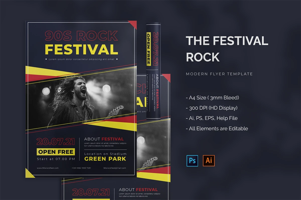 Rock Festival - Flyer. This Flyer template is designed for your company's business needs. very clean and elegant, and also easily edited and adjusted to your liking