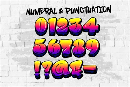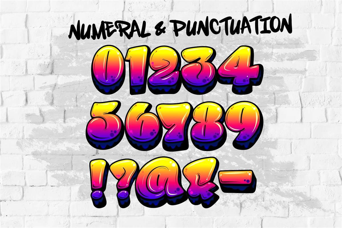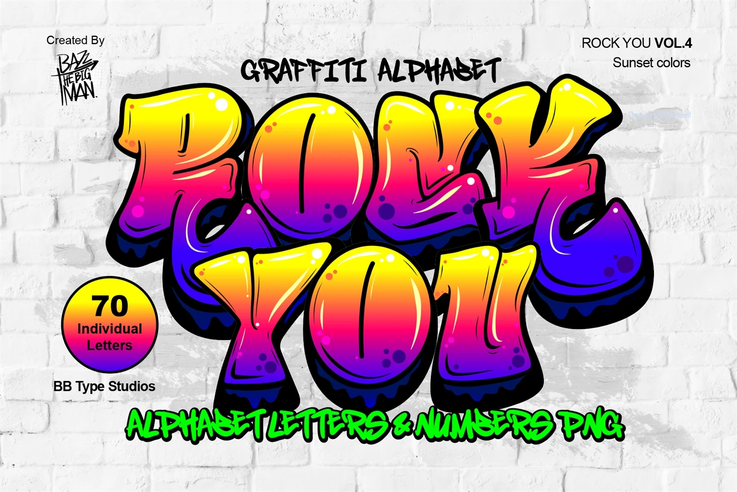 Rock you Sunset color Alphabet letters, numbers & punctuation PNG. file