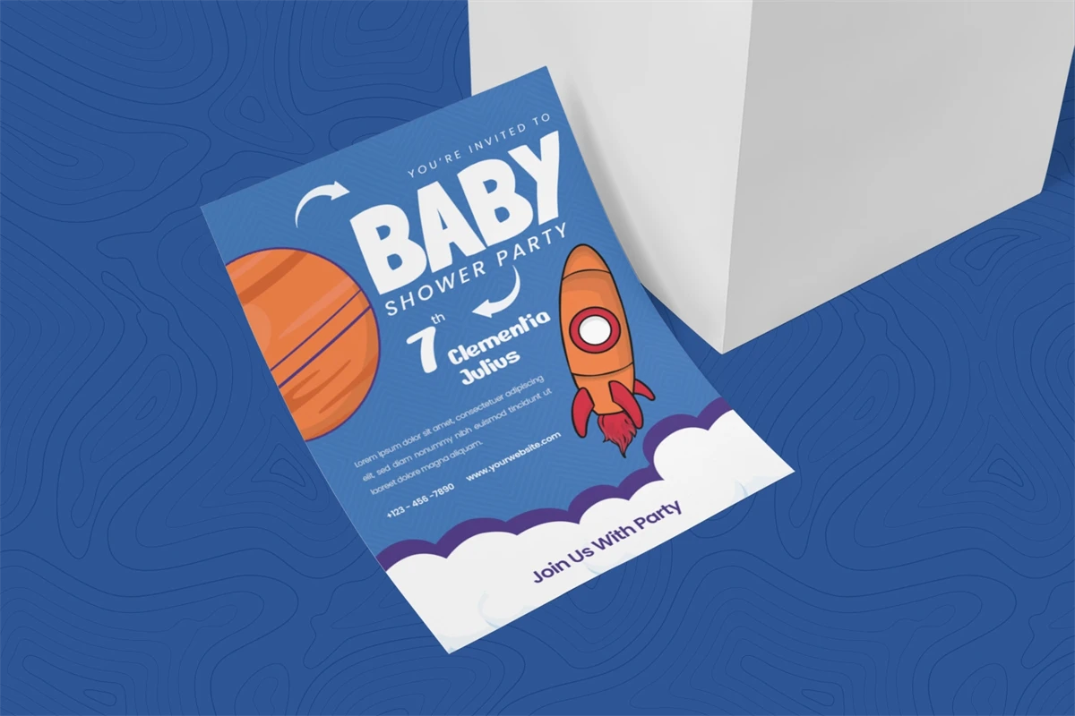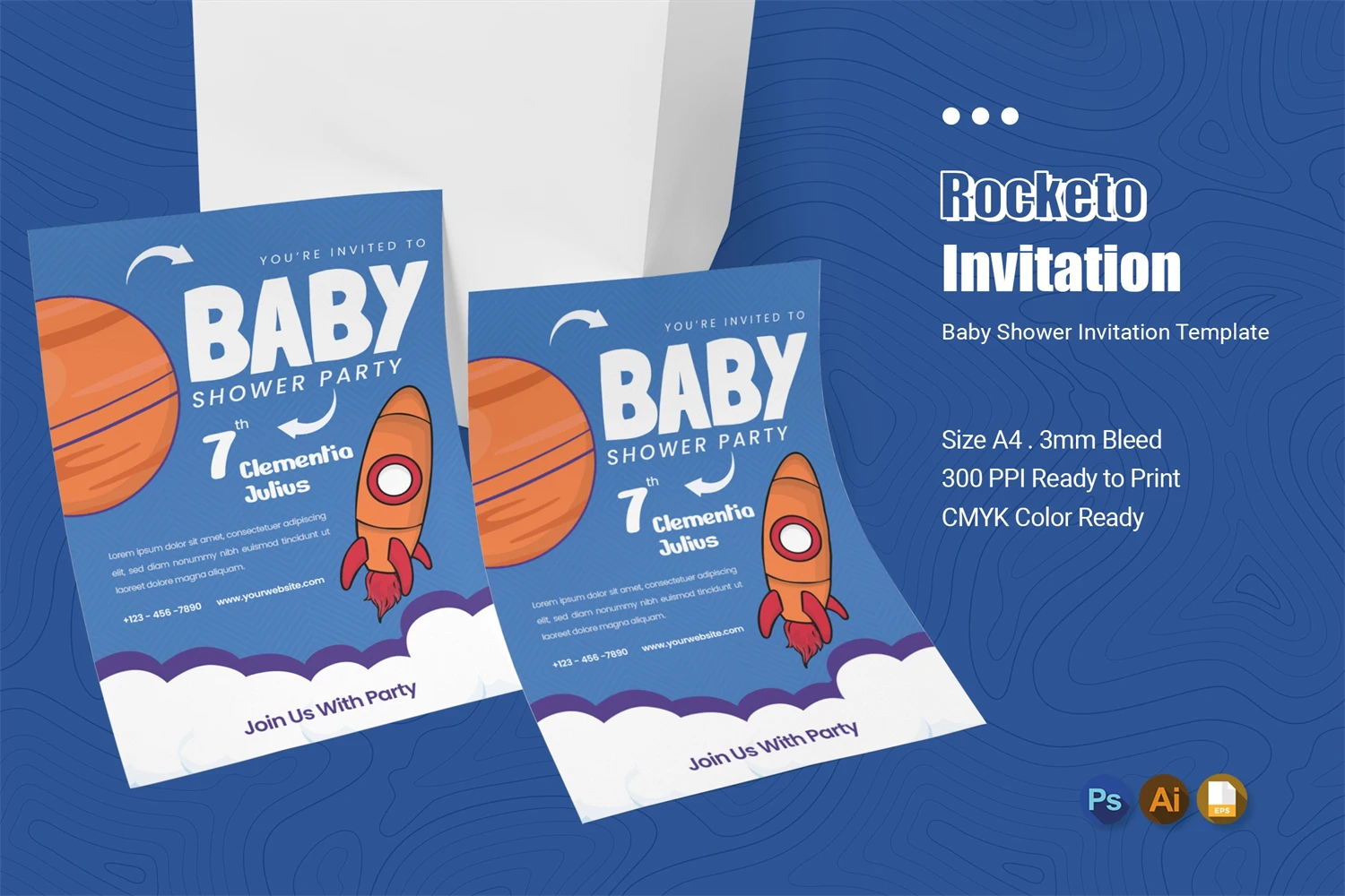 This baby shower invitation card template makes your invitation card look enjoyable, professional, and also simple. It's perfect for parents who want to celebrate the birth of their baby. You can easily to customize to your needs if using **illustrator** you just need to Drag your Image, select the image and placeholder, then right click select Make