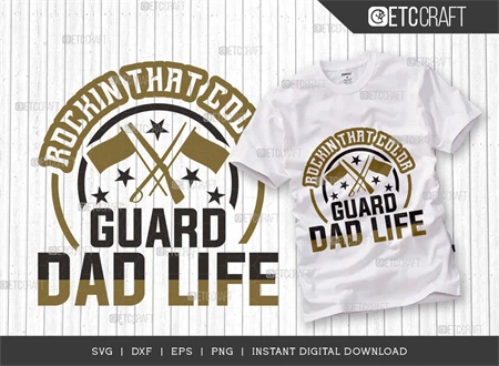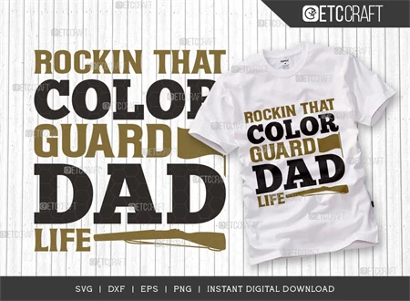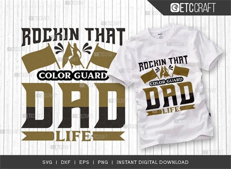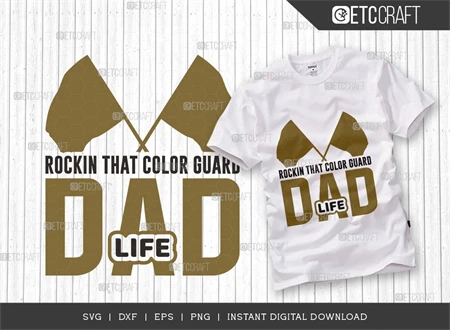 What's Included: The bundle features a high-quality "Rockin That Color Guard Dad Life" SVG file, perfect for various projects.