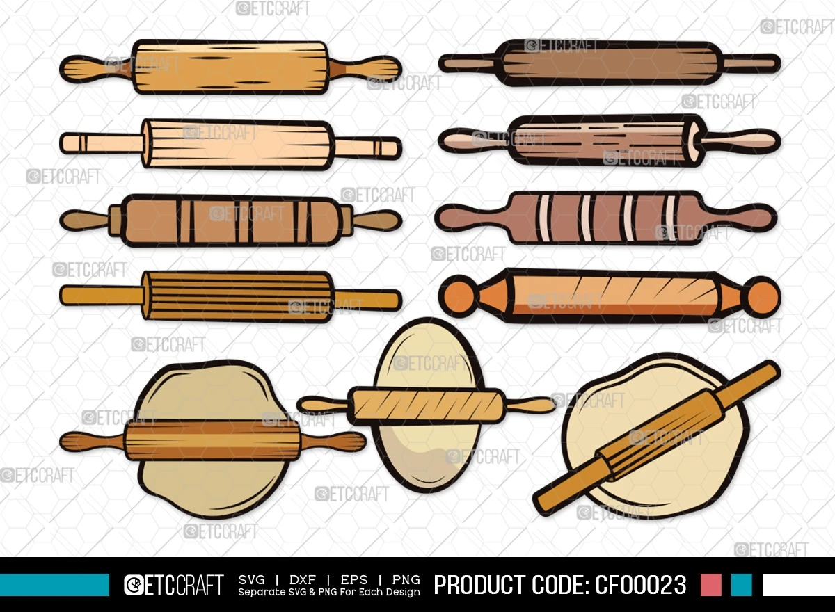 Introducing our delightful Rolling Pin Clipart Baking Kitchen SVG Cut File Bundle, perfect for all your culinary-inspired crafting needs! This versatile bundle is designed with utmost creativity, ensuring it caters to your baking and cooking-themed projects effortlessly.