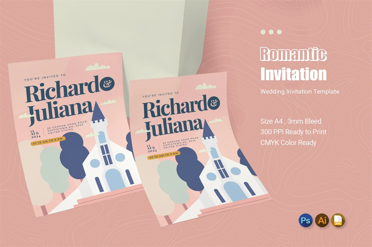 Celebrate your beautiful day with this beautiful wedding invitation template. Our wedding invitation templates will make your guests feel amazed and spread happy vibes. This template is obviously easy to use and customize.