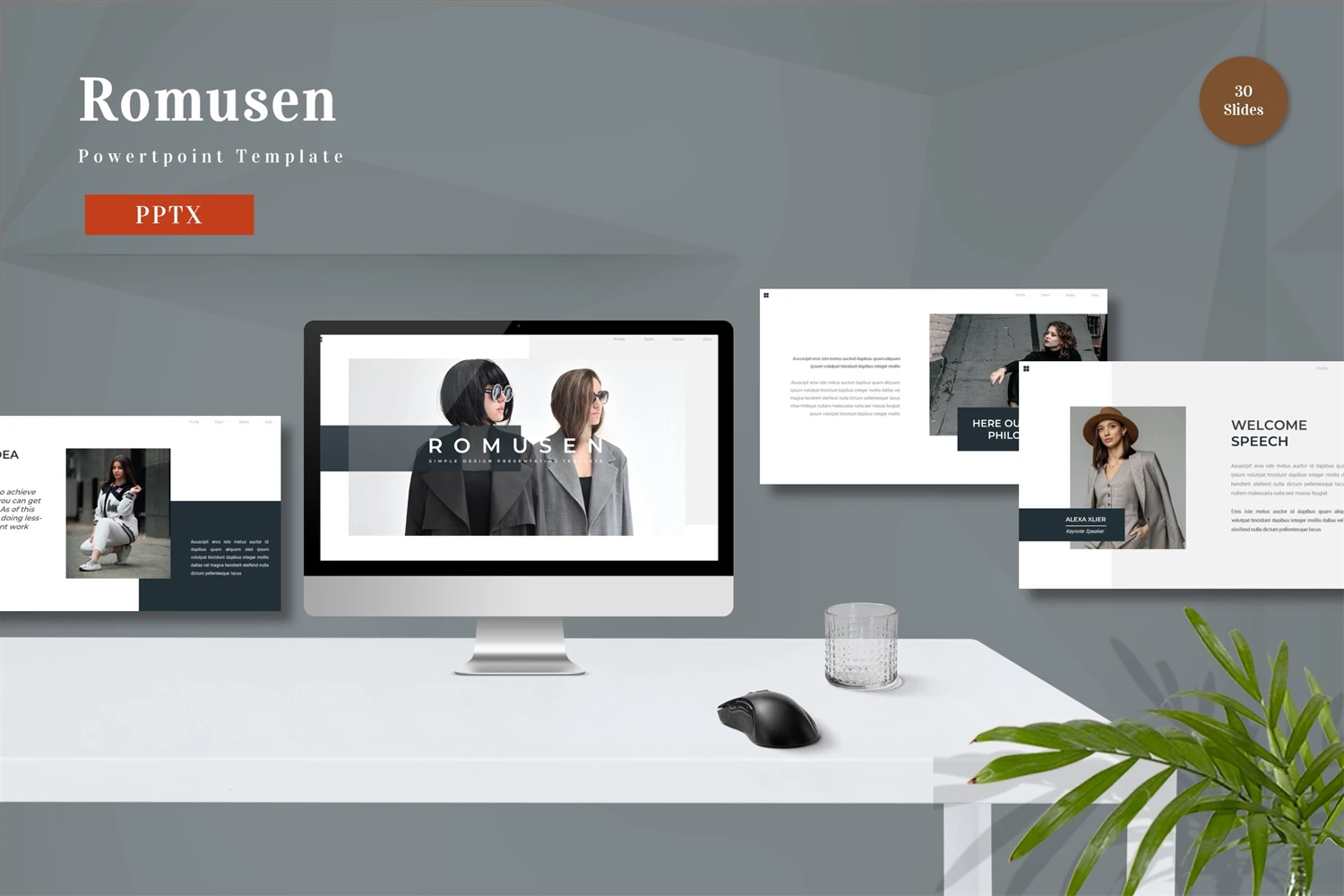 Get it now! **Romusen - Powerpoint Template** for All Business and Personal Needs All elements on this template are editable; input your content, replace your image with a placeholder, change the color, and all presentations include an animated slide to present your slides.