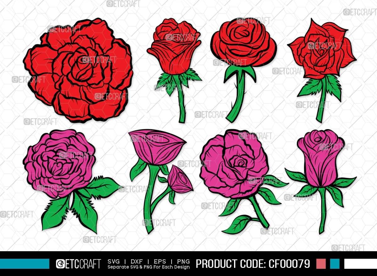 Introducing our "Rose Flower Clipart Floral Design" SVG Cut File Bundle, a blossoming collection that brings the timeless beauty of roses to your creative projects. Dive into a world of intricate floral designs and elevate your creations with the elegance of roses.