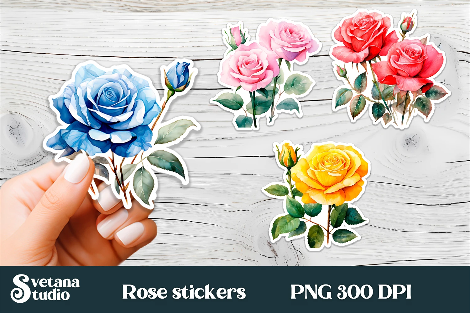 Rose flower stickers PNG, rose flower PNG, printable flower stickers.