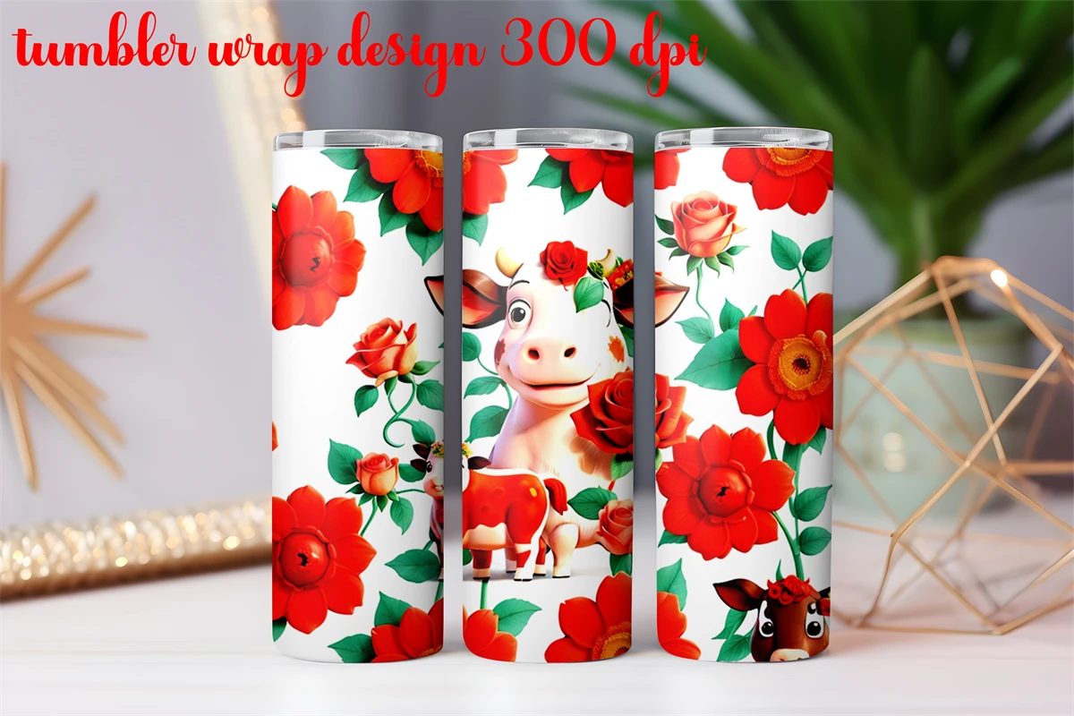 rose Flowers cow Skinny Tumbler pattern designs