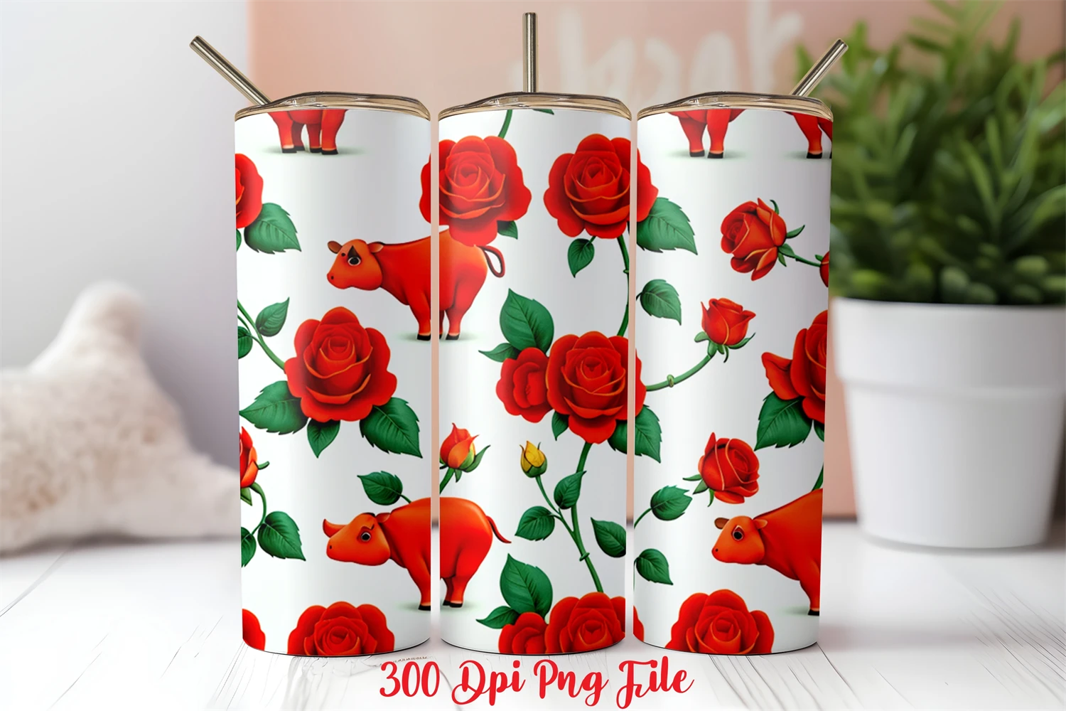 rose Flowers cow Skinny Tumbler pattern designs