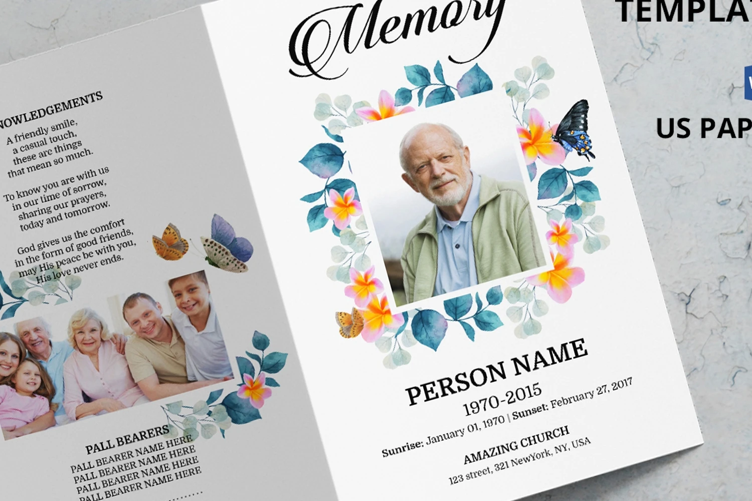 Beautiful Funeral Program template,easy to edit and print.