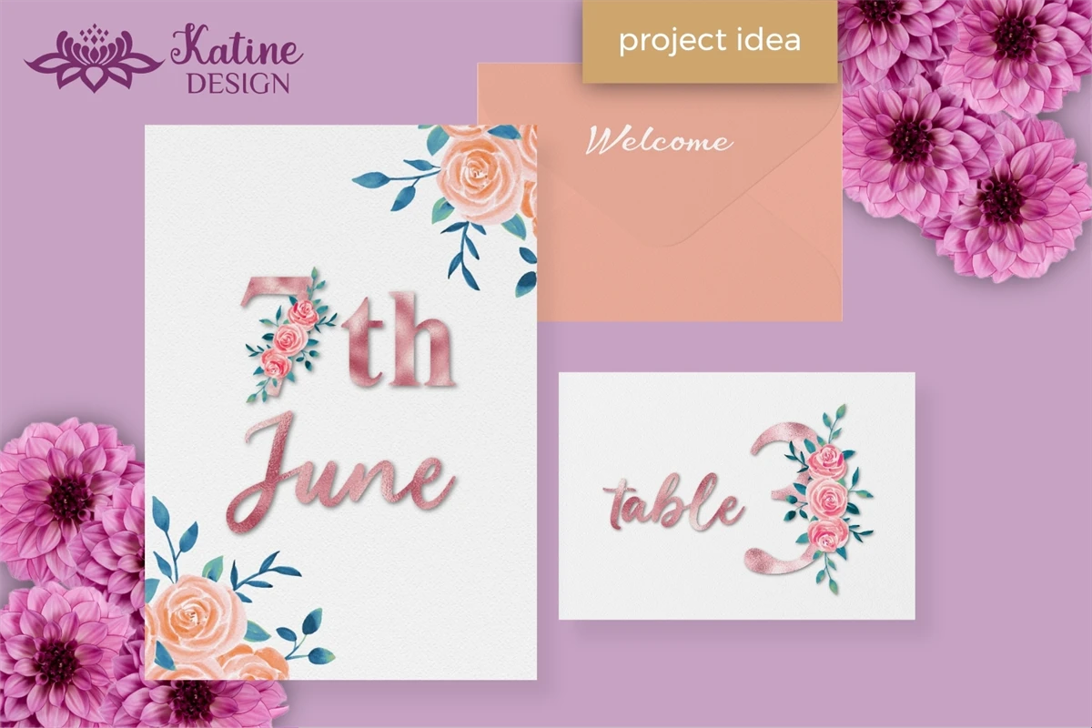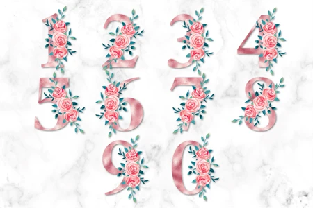 Rose Gold Floral Numbers Clipart Wedding Birthday Design PNG