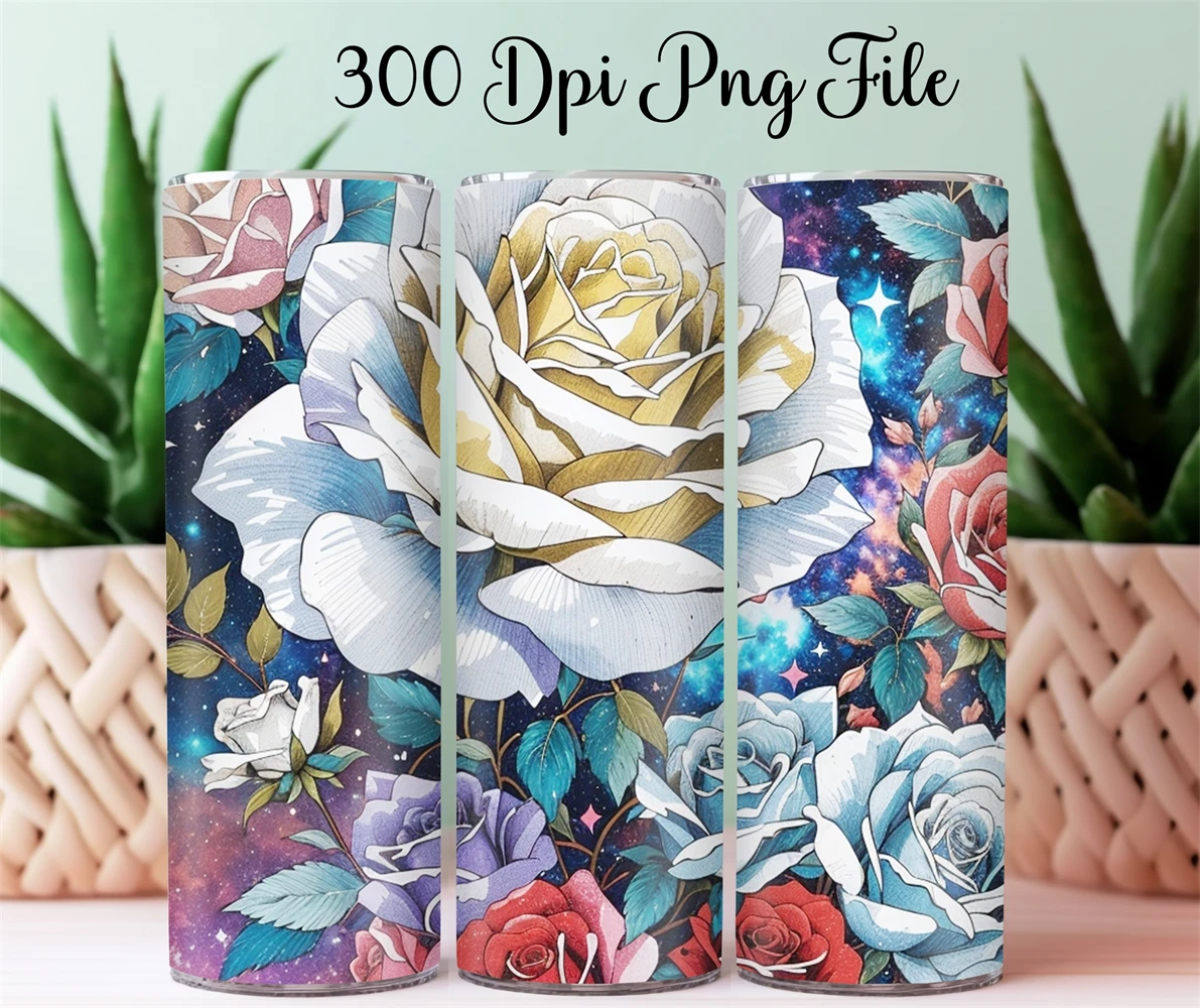 Rose Pattern Tumbler Sublimation Wrap Designs PNG