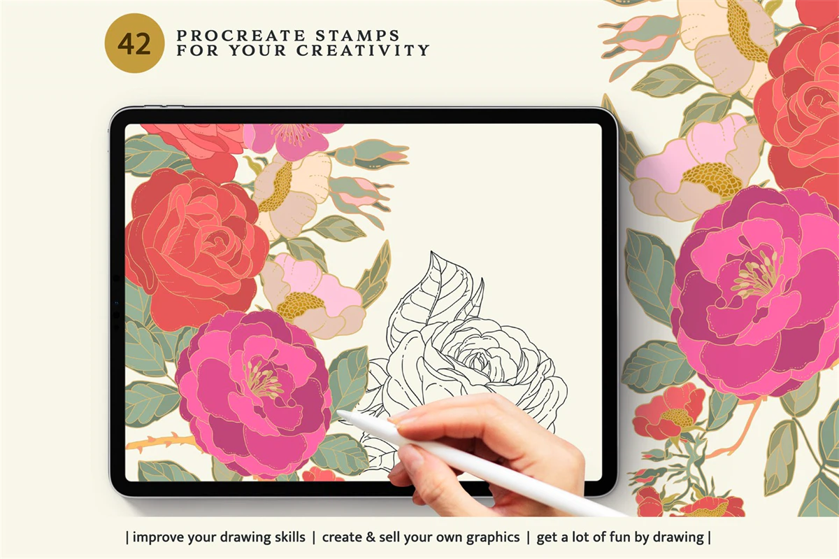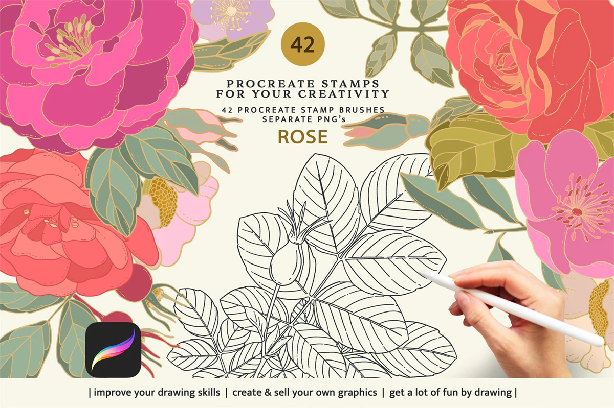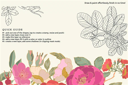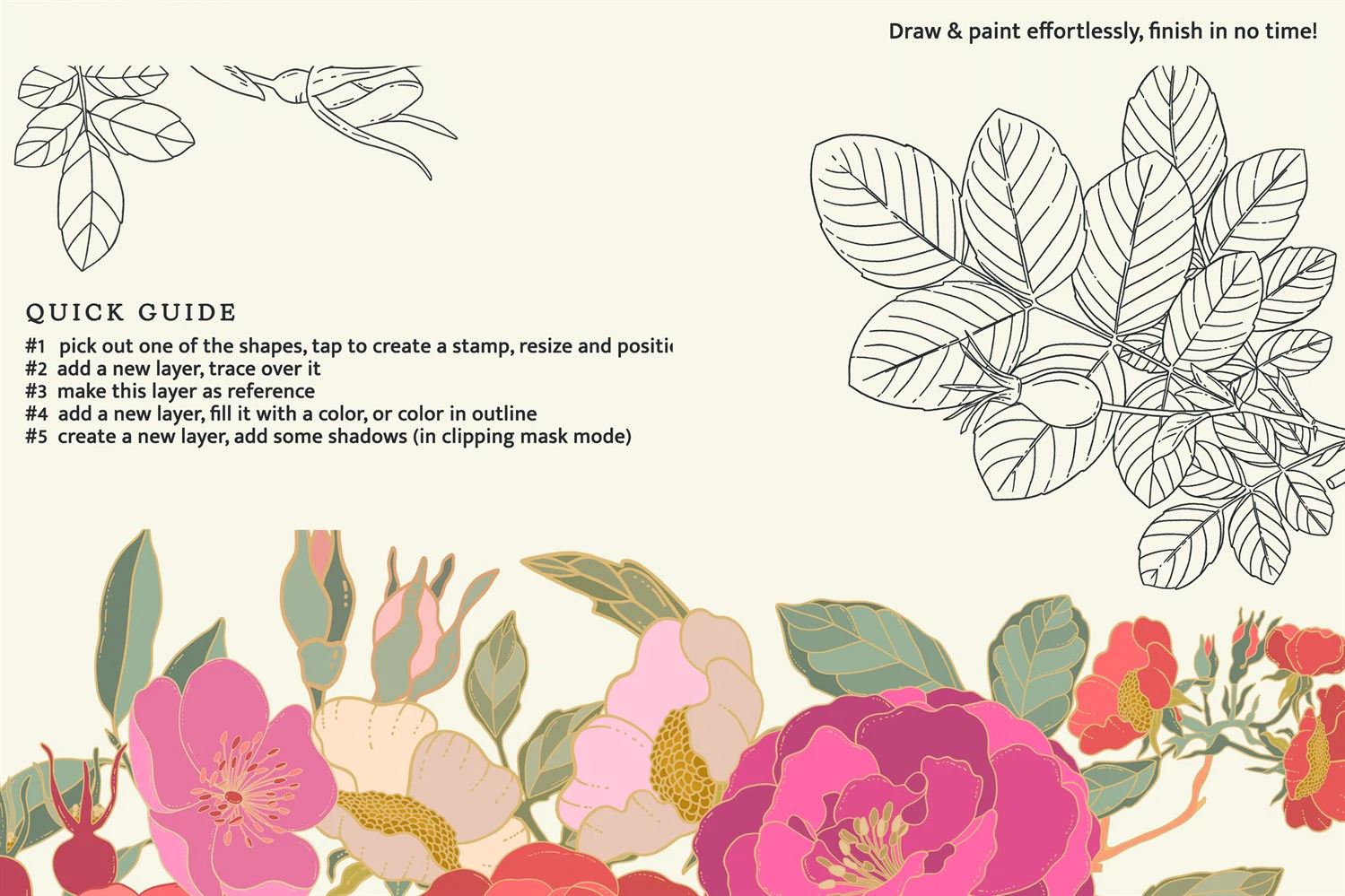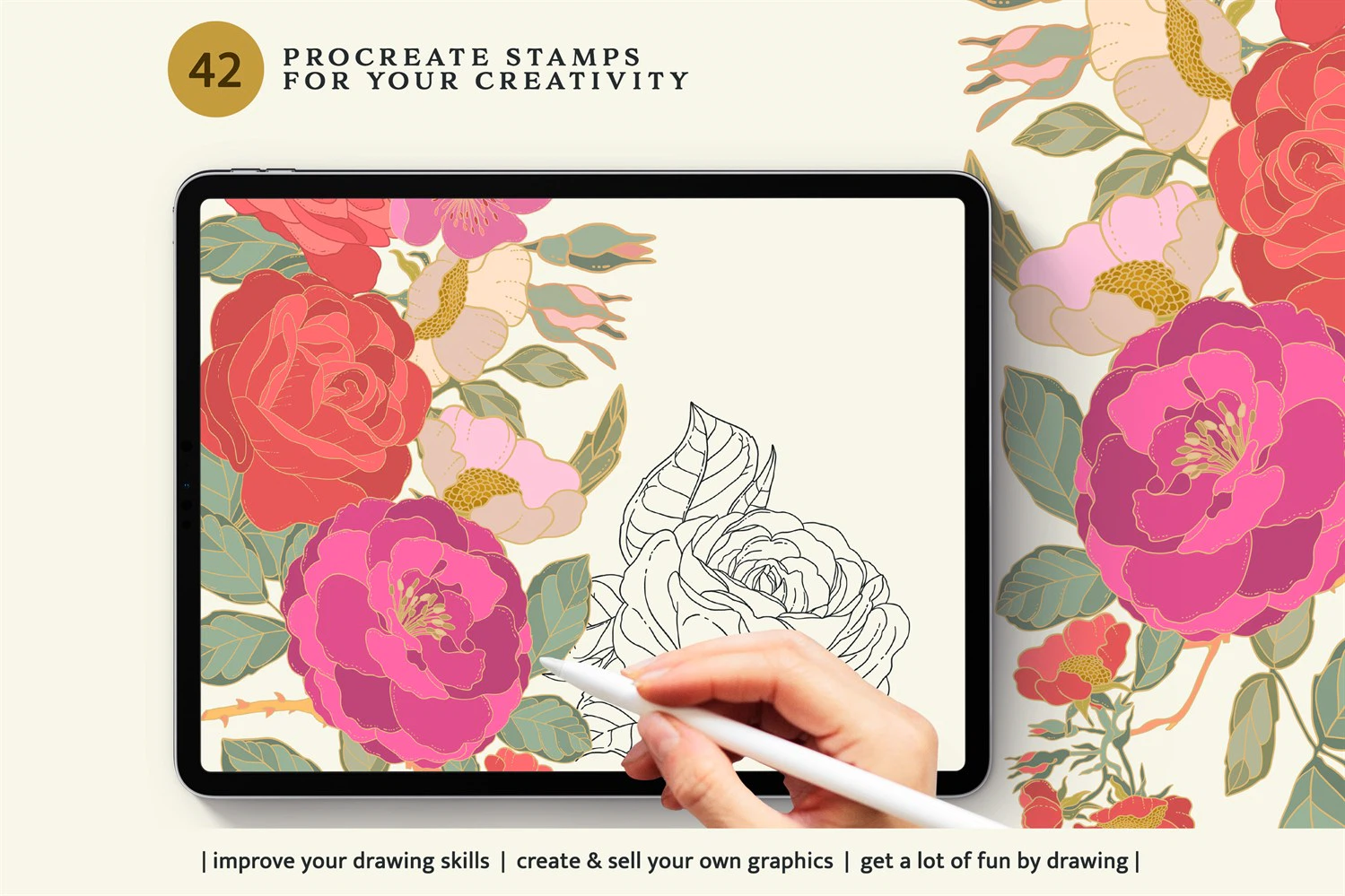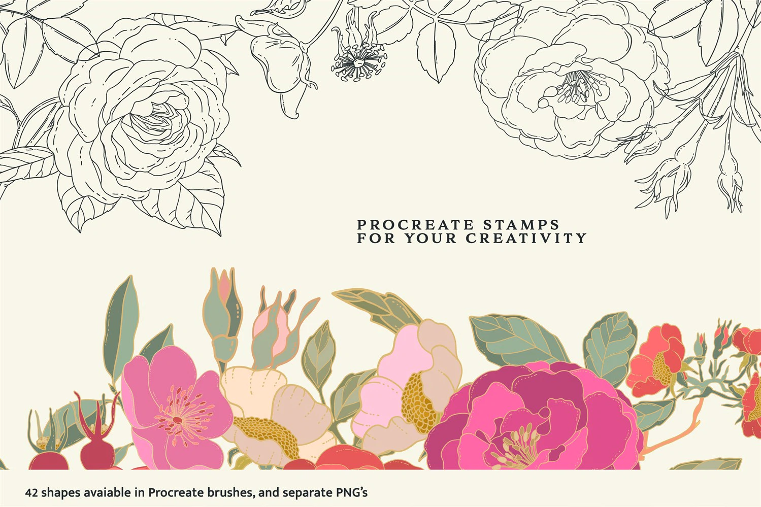 The poppy stamp brush set for Procreate is a digital brush used in the Procreate app that creates botanical designs with a single stamp. These stamps can be easily imported into the app and applied to artwork or illustrations, providing a quick way to add detailed elements to a design. They are a useful tool for artists and designers looking to add decorative elements to their digital artwork. The brush can be customized in size, opacity, and color, making it a versatile tool for creative projects