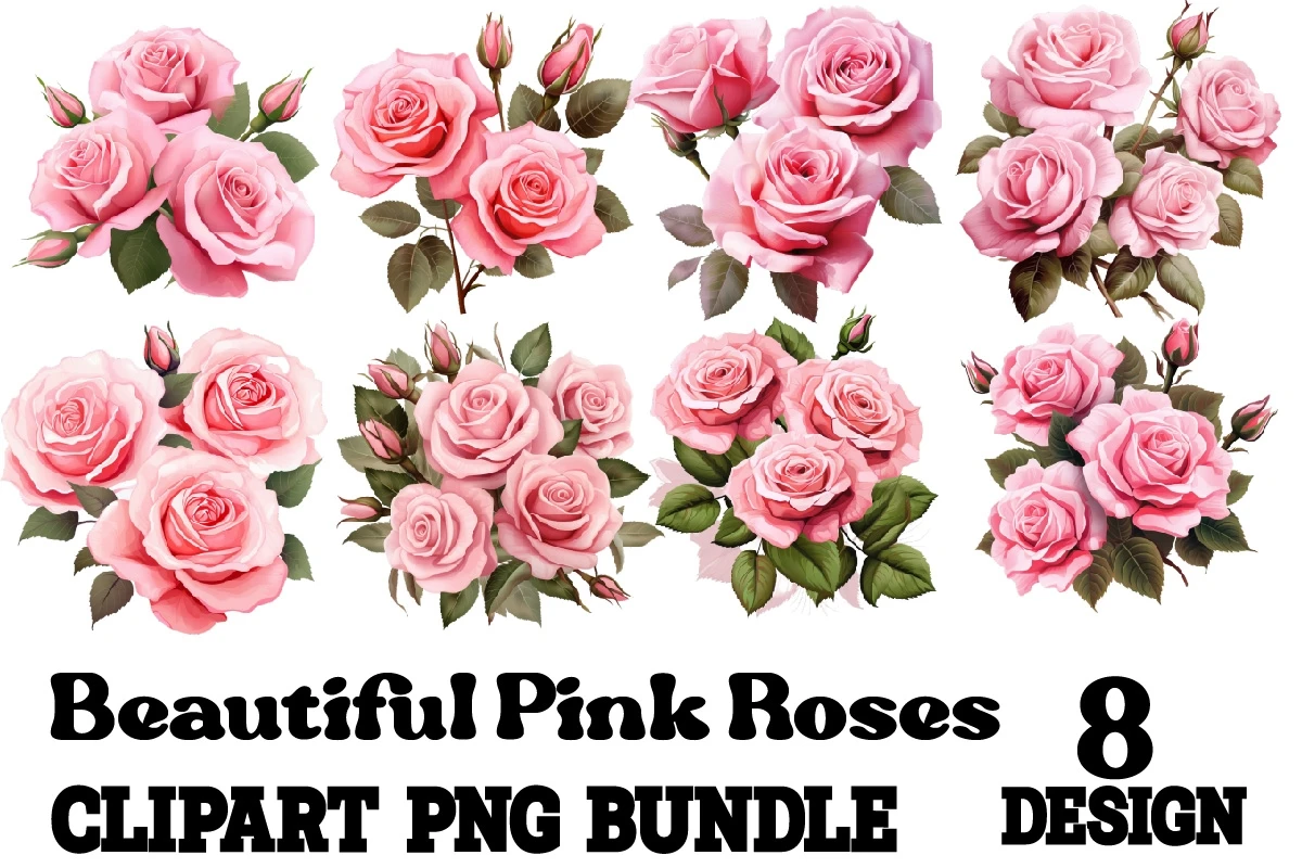 Beautiful Pink Roses Clipart Bundle