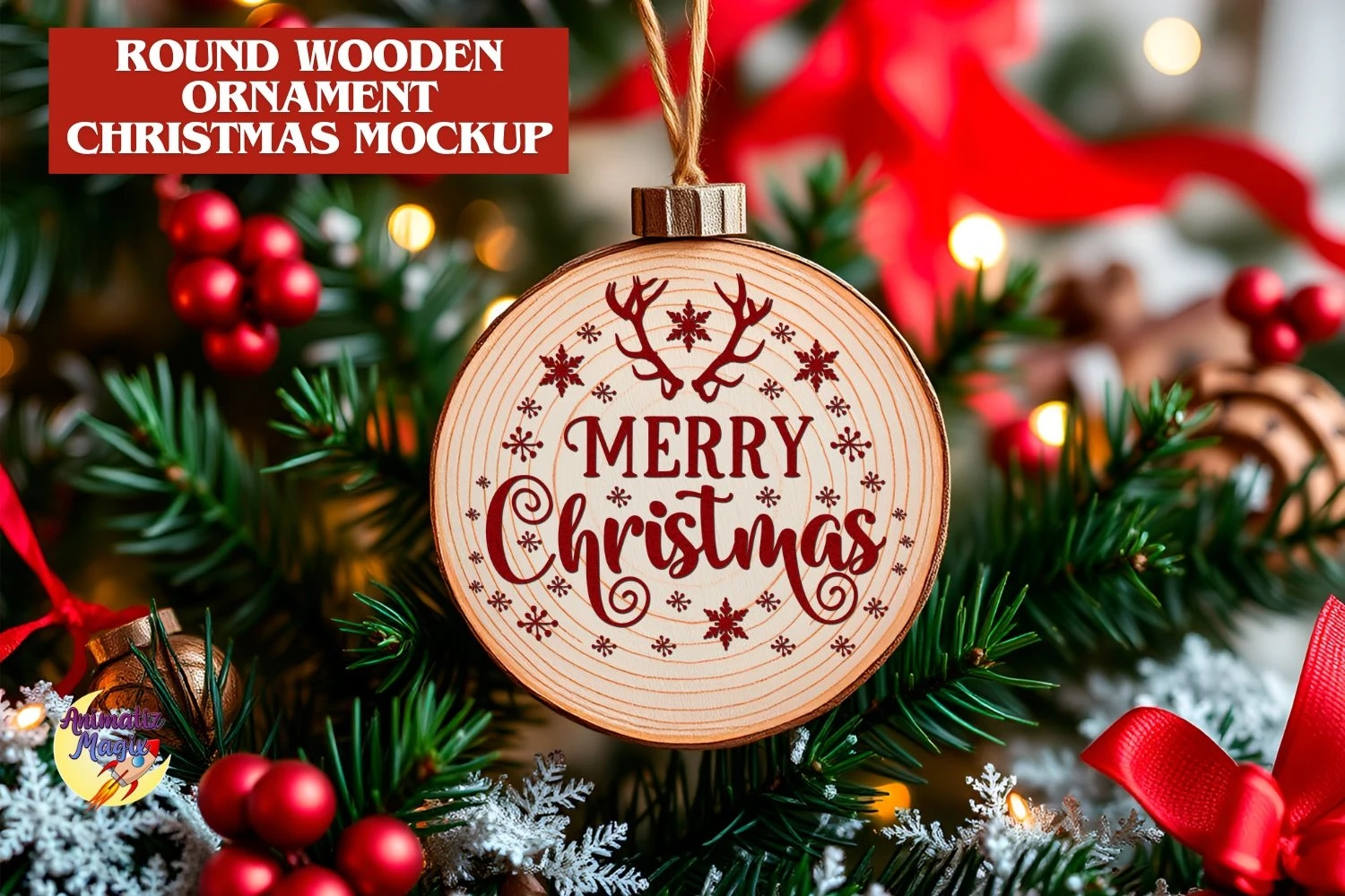 Round Christmas Ornament Mockup