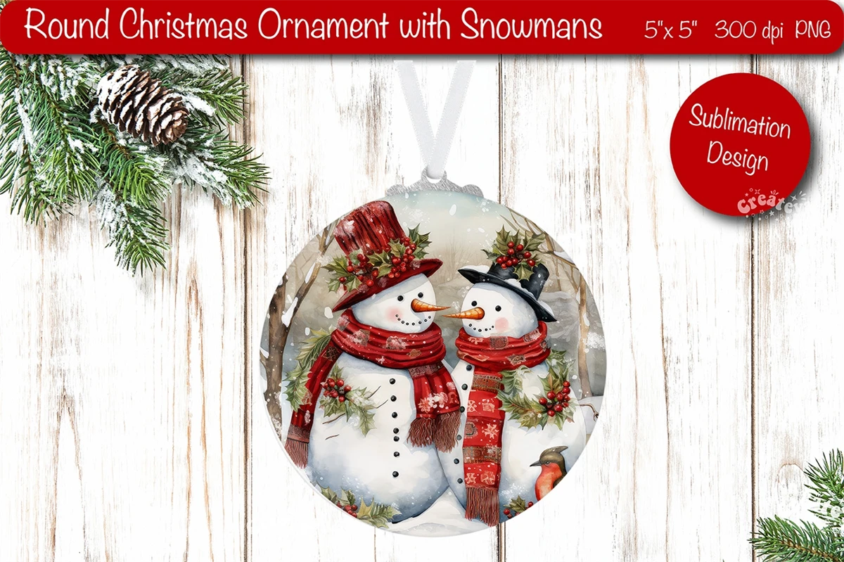 Round Christmas ornament sublimation with a cute Watercolor Snowman PNG. Cute Christmas Sublimation Round Ornament! Adorable snowmen, vibrant colors, and lasting memories. Perfect for your tree or as a delightful gift. Happy holidays!