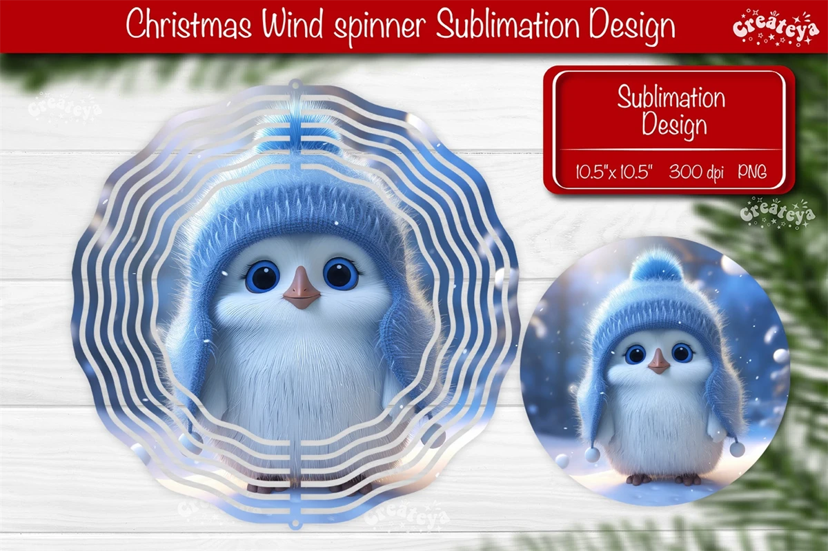 Round Christmas Wind Spinner with Cute Christmas Penguin PNG. These Christmas designs of wind spinner bring a touch of snow-filled charm and a warm, fuzzy feeling to your home decor.