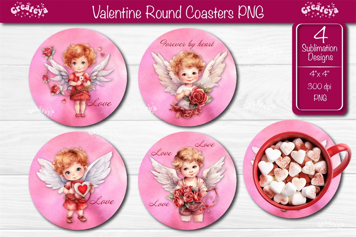 Round coaster Sublimation Valentine angel coaster Love Cupid