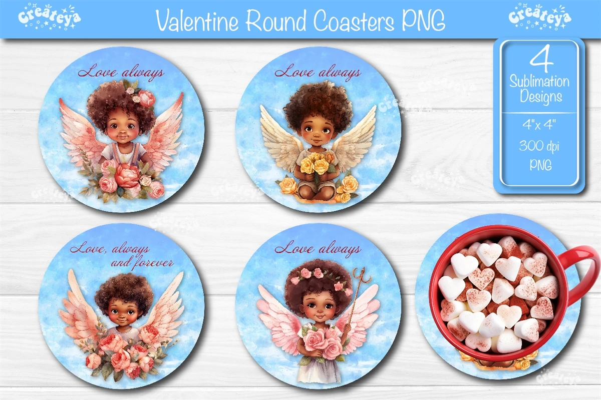 Car Round Coaster Valentine with Watercolor Angels PNG. This is a round coaster 4'' x 4'' you can also use it as a keychain sublimation design.