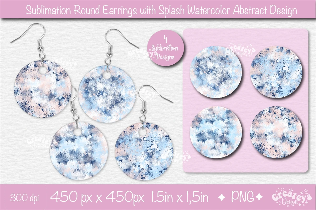 This Round Earring Sublimation Designs Bundle includes 4 watercolor splash background designs.