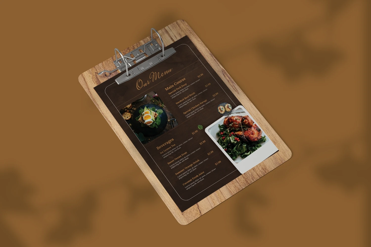 Menu Restaurant Template is a menu template for people who sell, business, or run a food-related business. The layout makes it easy to find the menu you want. Too many choices can make customers feel overwhelmed, so its better to limit the number of choices, colors, and other design elements so that customers can easily scan and order items.