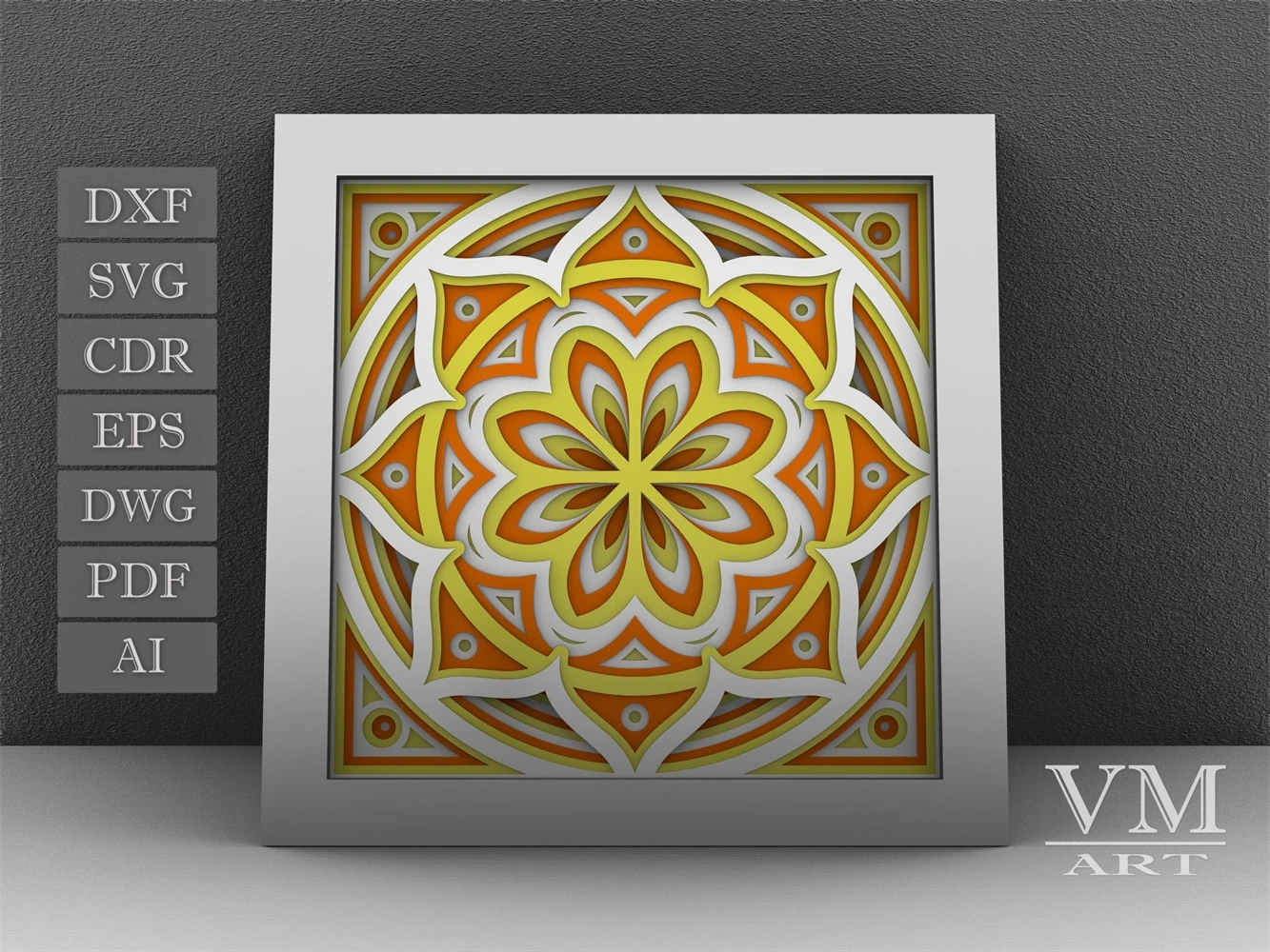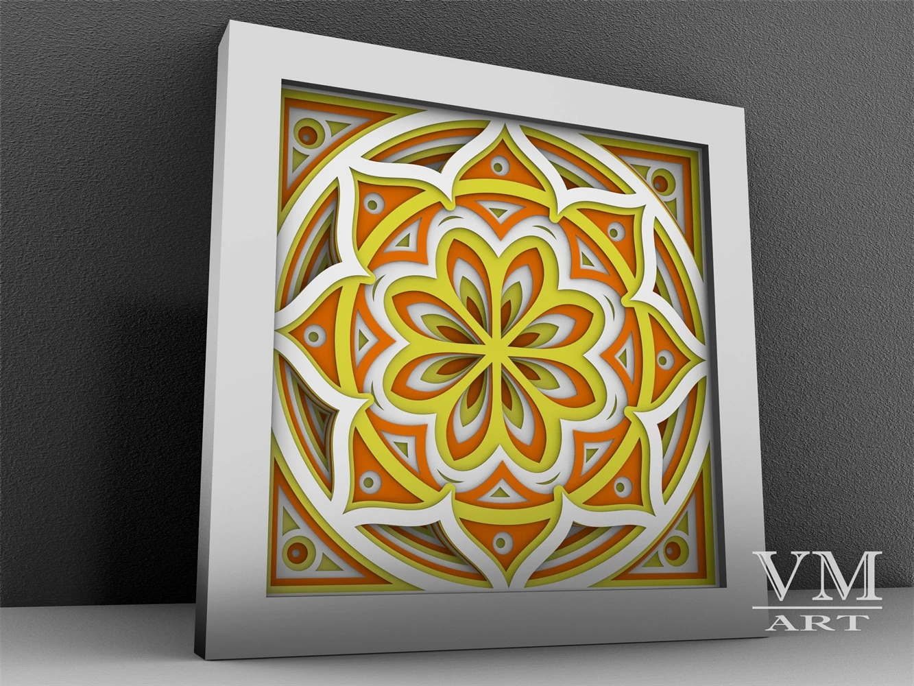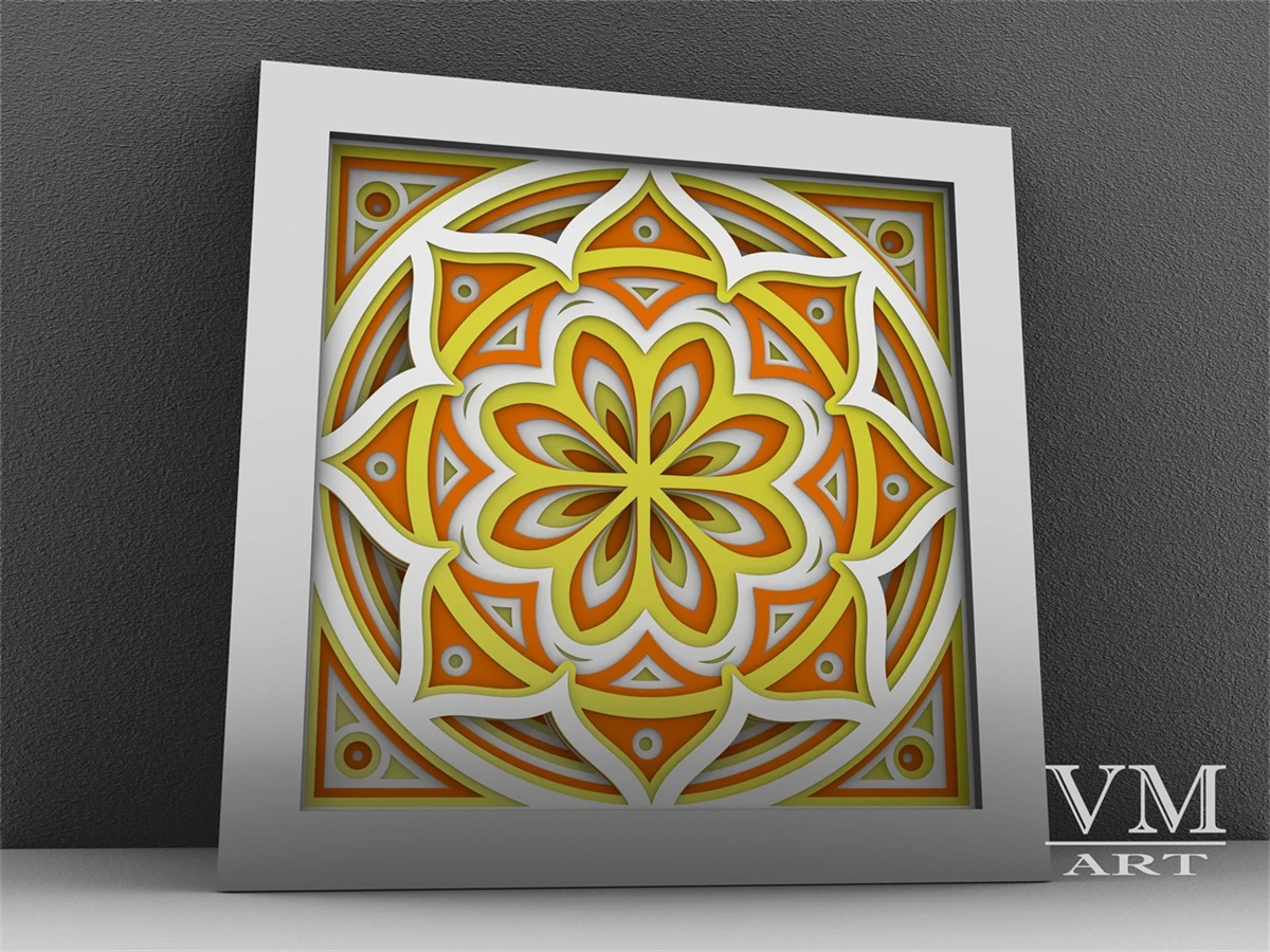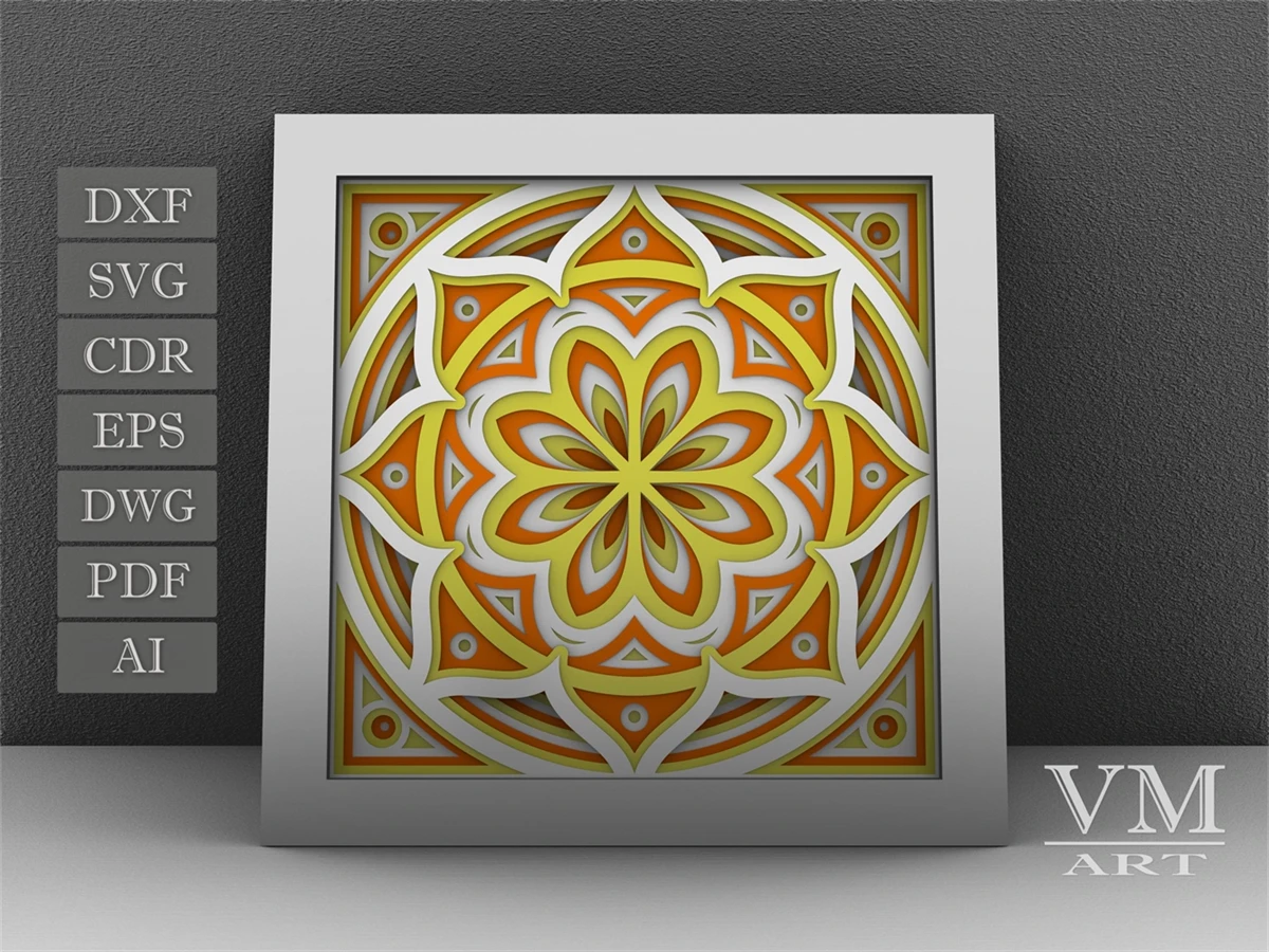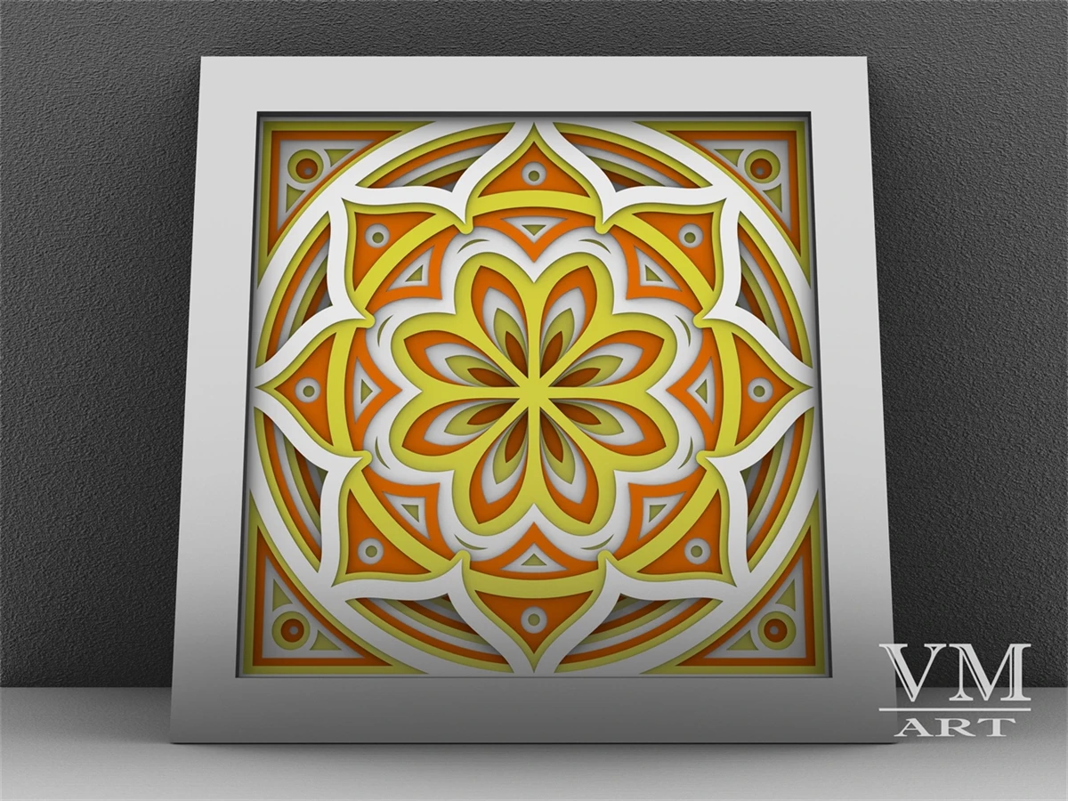S08 - Layered 3D Mandala Shadow Box SVG, 3D Flower Mandala