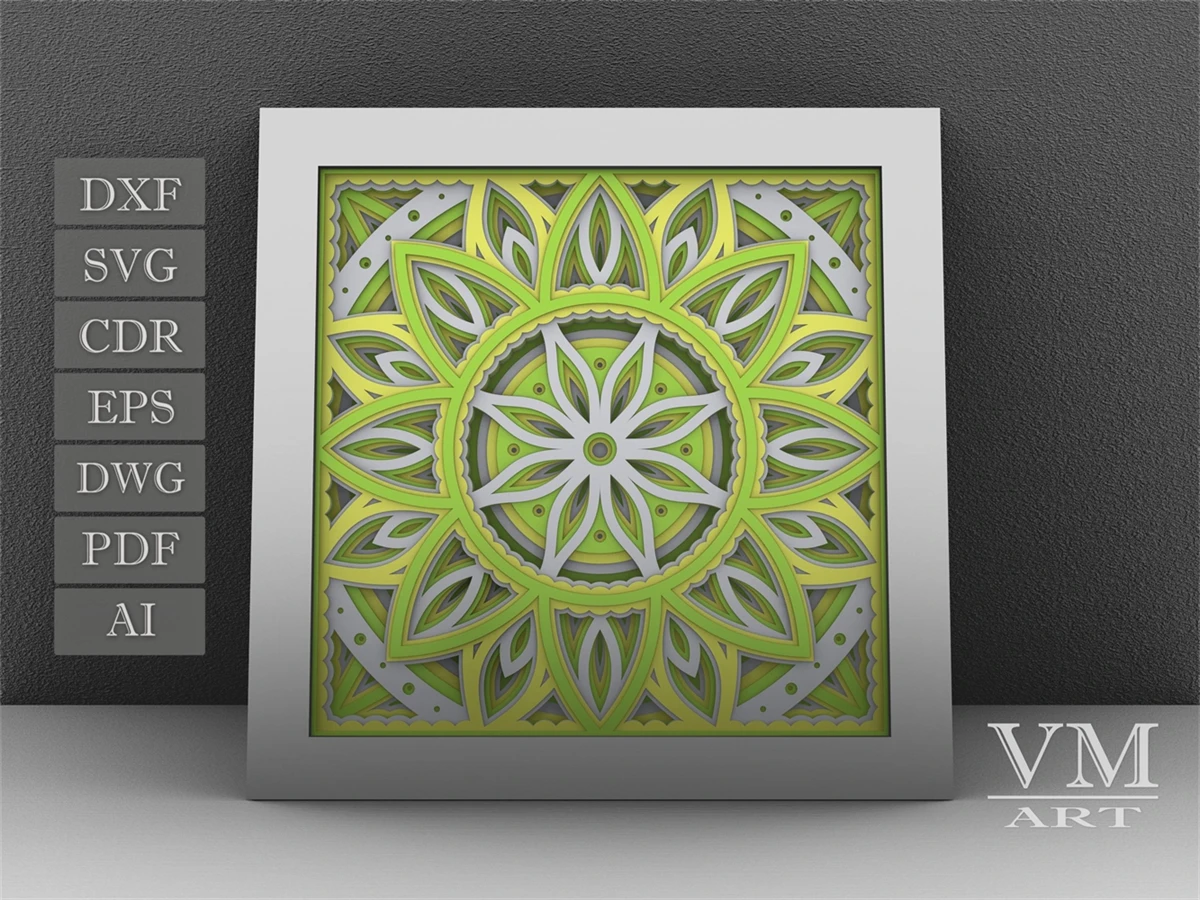S10 - Layered 3D Mandala Shadow Box SVG, 3D Flower Mandala