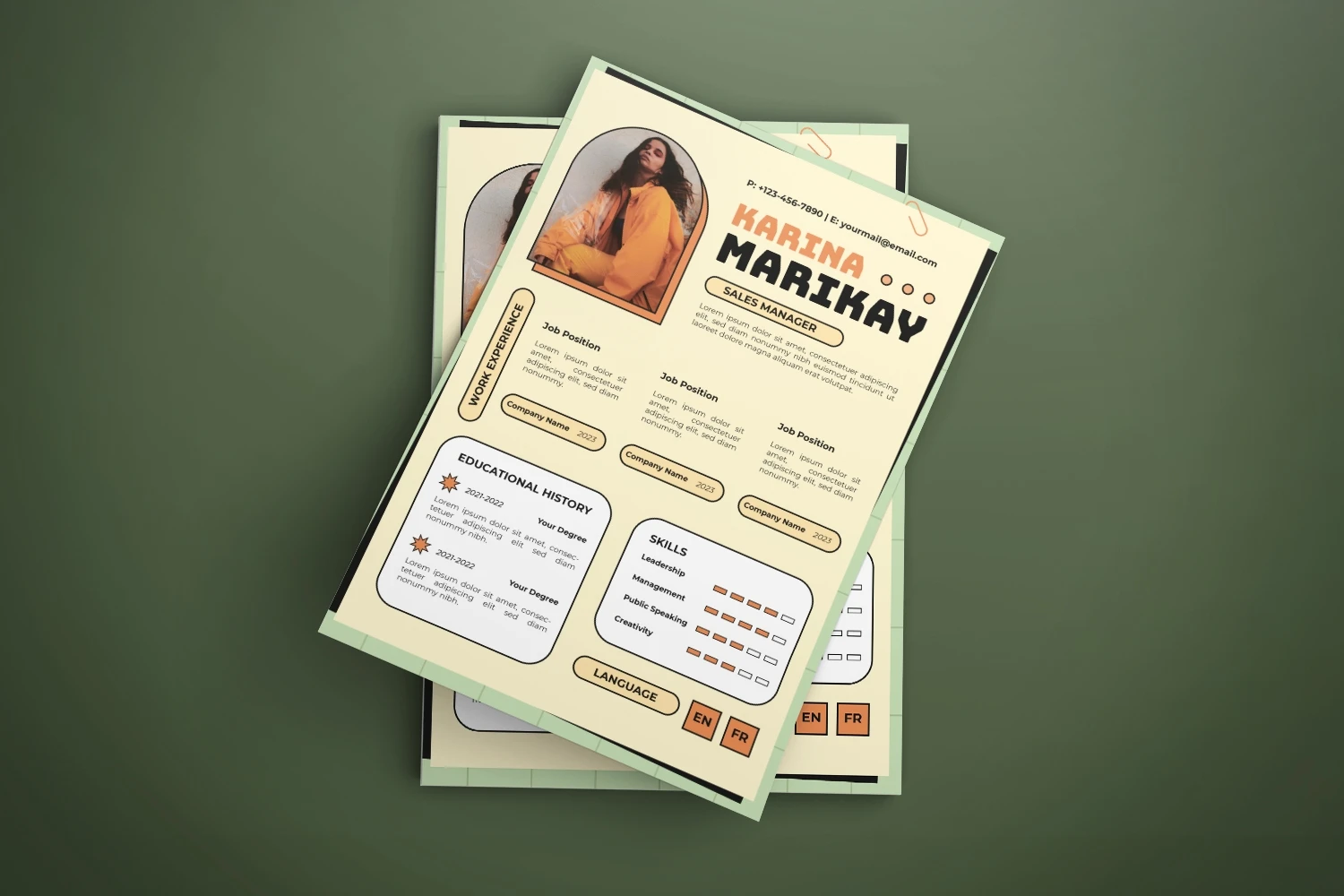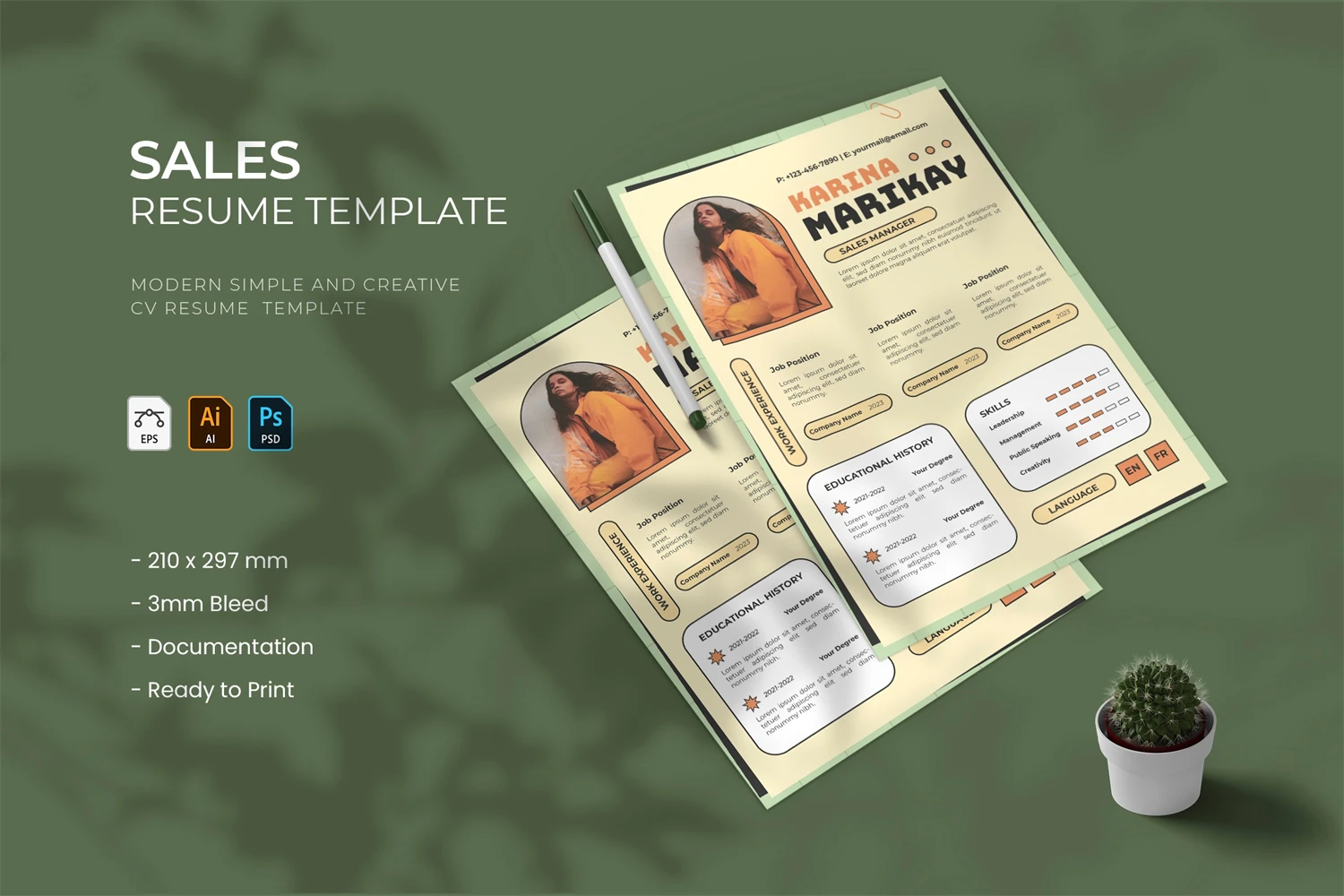 creative resume and cover letter template that will make your resume stand out from the hundreds of resumes employers get. It gives you the information you need, such as your name, contact information, social media links, education, experience, skills and interests. Also, it comes with three different color schemes.